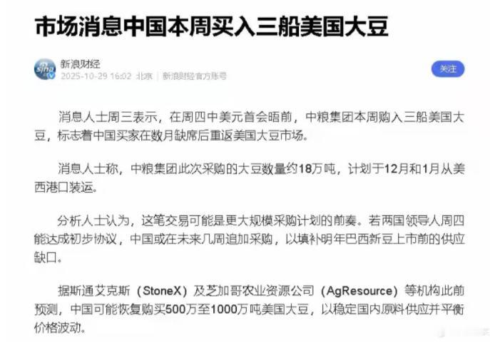 一夜之间,巴西沉没了,巴西大豆价格攀升至650美元/吨,这让巴西大豆商欣喜不已,他们笃定中国对大豆需求旺盛,此前已敲定800万吨的大豆订单。   可他们压根没搞懂,大豆连着咱老百姓的柴米油盐,更拴着国家的粮食根基,哪是他们想涨价薅羊毛就能随便薅的?   咱不装糊涂,中国确实是大豆消费大国,每年要吃掉1亿多吨大豆,榨豆油、做豆腐豆皮、给猪牛羊当饲料,哪儿都离不了。每年进口量也常年维持在8000万吨以上,就说2025年一到九月,咱单从巴西就买了6370万吨大豆,占了总进口量的七成多,说巴西是主要供应商没毛病。   可“主要”不代表“独一份”,咱手里的备选方案多着呢。巴西豆商揣着订单偷乐的时候,怕是忘了美国仓库里还堆着不少大豆,同一时间段咱也买了1680万吨美国大豆,占比近两成,阿根廷、加拿大的大豆也随时能补上来。   更关键的是,这些年国家早就在大豆供应链上留了后手,就怕被人卡脖子。以前咱自己产的大豆不够,只能被动听国际市场喊价,现在不一样了。大豆振兴计划推下去后,国内产量连续三年都超过2000万吨,2024年的自给率比2020年提了4个百分点。   别小看这几个点,直接就让国际市场对“中国需求”的看法变了,以前觉得咱缺豆就得抢着买,现在见咱自己能产,高价订单自然没那么硬气。   巴西豆商更没算到,咱国家储备库里的大豆就是“压舱石”。这些储备不是摆着看的,一旦国际价格疯涨,储备大豆就会及时投放到市场,像个稳压器似的把价格拉回来。而且咱国内的企业也学聪明了,不再扎堆下单推高价格,而是看着需求错峰采购,真不行还有期货市场能对冲风险,国内大豆期货价格稳稳停在4100元左右,没跟着国际市场瞎起哄。   还有个理儿他们没弄明白:中国的“刚需”是真的,但咱不是冤大头。这些年咱一直在拓展进口渠道,俄罗斯的非转基因大豆、埃塞俄比亚的特色大豆都成了新选择,就是要打破少数国家的垄断。   再说了,巴西大豆涨价的同时,他们自家的运输还出问题了,亚马逊河上的运粮船堵着动不了,大豆堆在港口都快发霉了。真要是把中国逼急了,咱转头把订单分给美国、阿根廷,最后受损的还是他们自己。   说透了,大豆贸易讲的是互相挣钱,不是单方面漫天要价。中国愿意买巴西大豆,是看上了他们的品质和合作基础,但前提是价格公道、规矩透明。现在国内还在推豆粕减量替代技术,饲料里大豆的用量在减少,国产大豆的品质也越来越高,这些都在一点点增强咱的议价能力。   所以巴西豆商别高兴太早,中国的“刚需”从来不是别人敛财的工具。咱要的是稳定的供应,不是坐地起价的套路。要是真把合作的诚意耗没了,等咱的进口渠道越铺越广、国产大豆越产越多,到时候哭的可就不是中国消费者了。