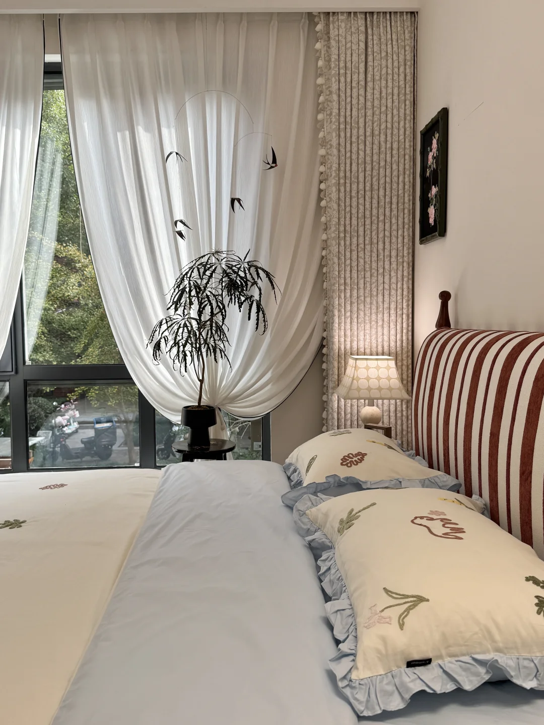 每个房间都是超大的落地窗,拥有一年四季的限定窗景
