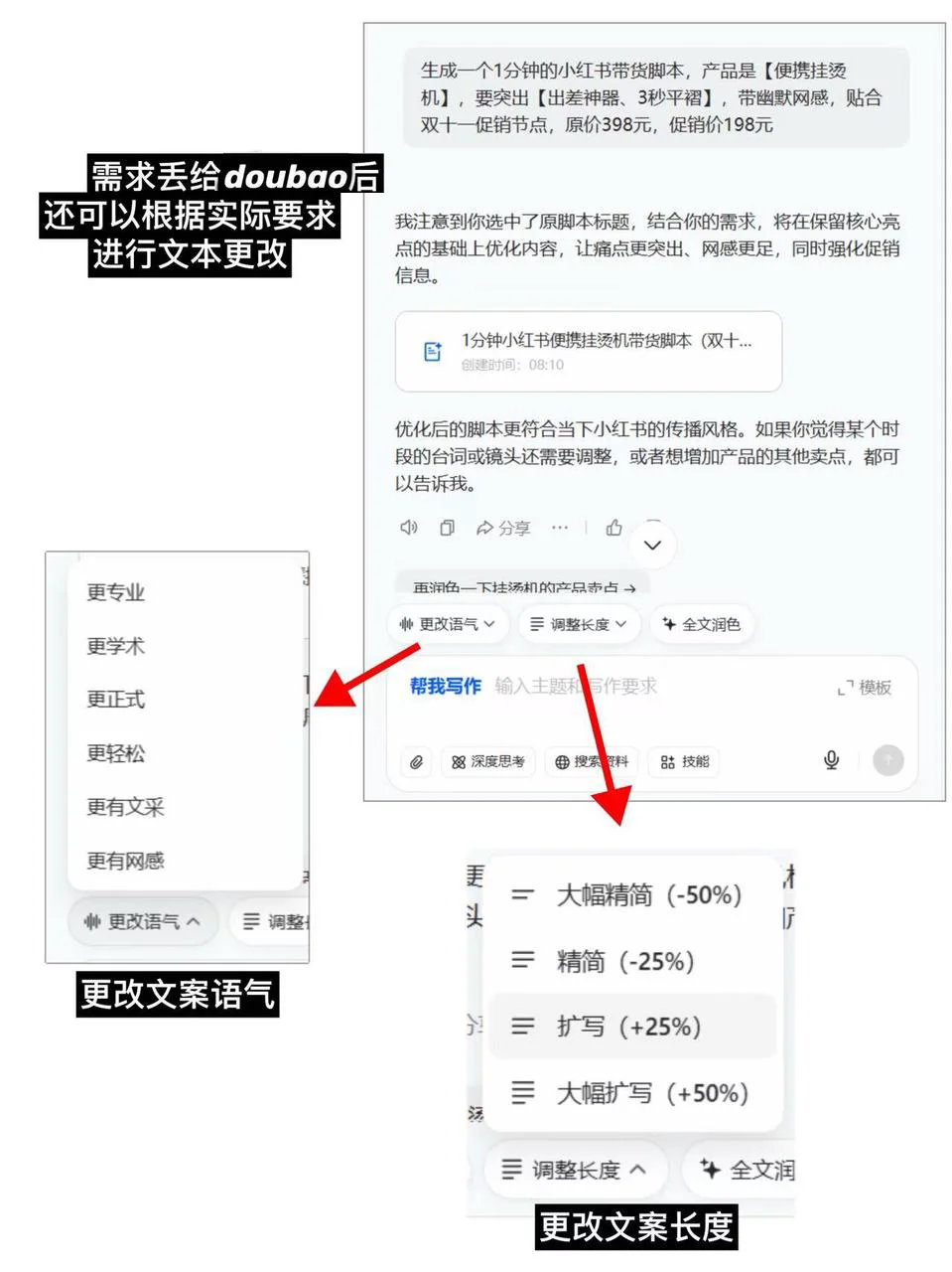 比如我尝试做的便携式挂烫机双十一期间的带货视频(见图2),我的指令是: