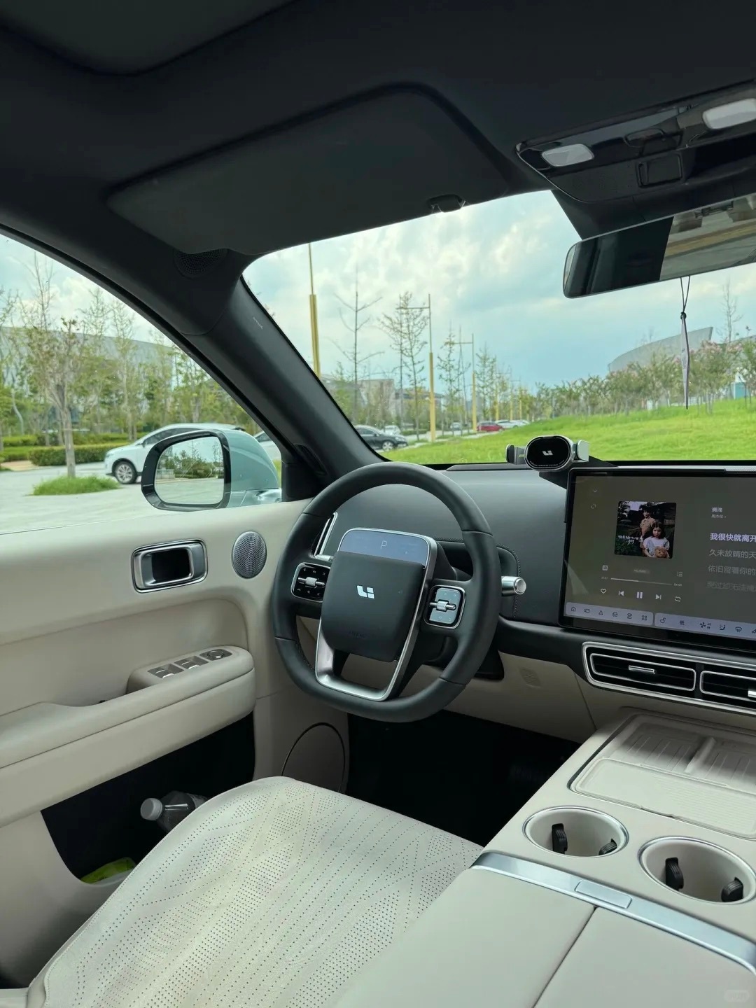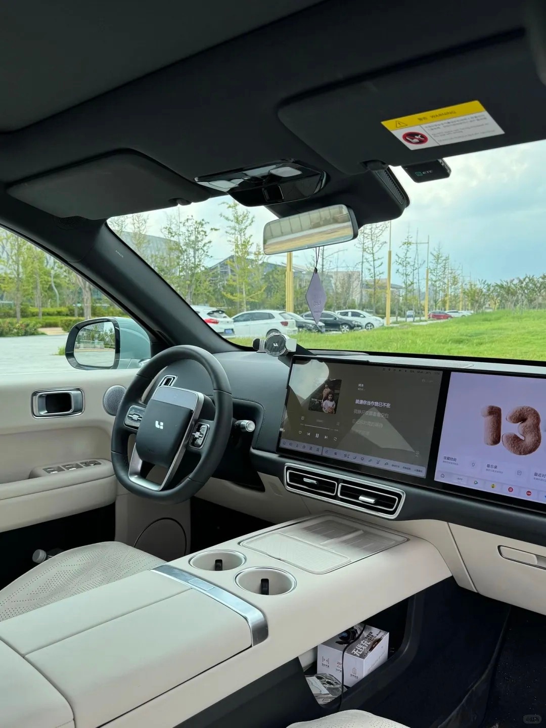 理想汽车浅米色与雾灰色交织的座舱,像把清晨的柔光搬进车里。细腻的皮质座椅带着柔和光泽,中控台的浅木纹饰板晕开温润质感,连车顶的浅色翻毛皮都透着精致。阳光透过车窗洒进来,整个空间明亮又通透,没有深色内饰的压抑,只剩干净治愈的氛围,每次坐进来都像踏入了温柔的小世界,颜值与舒适感直接拉满!很爱!