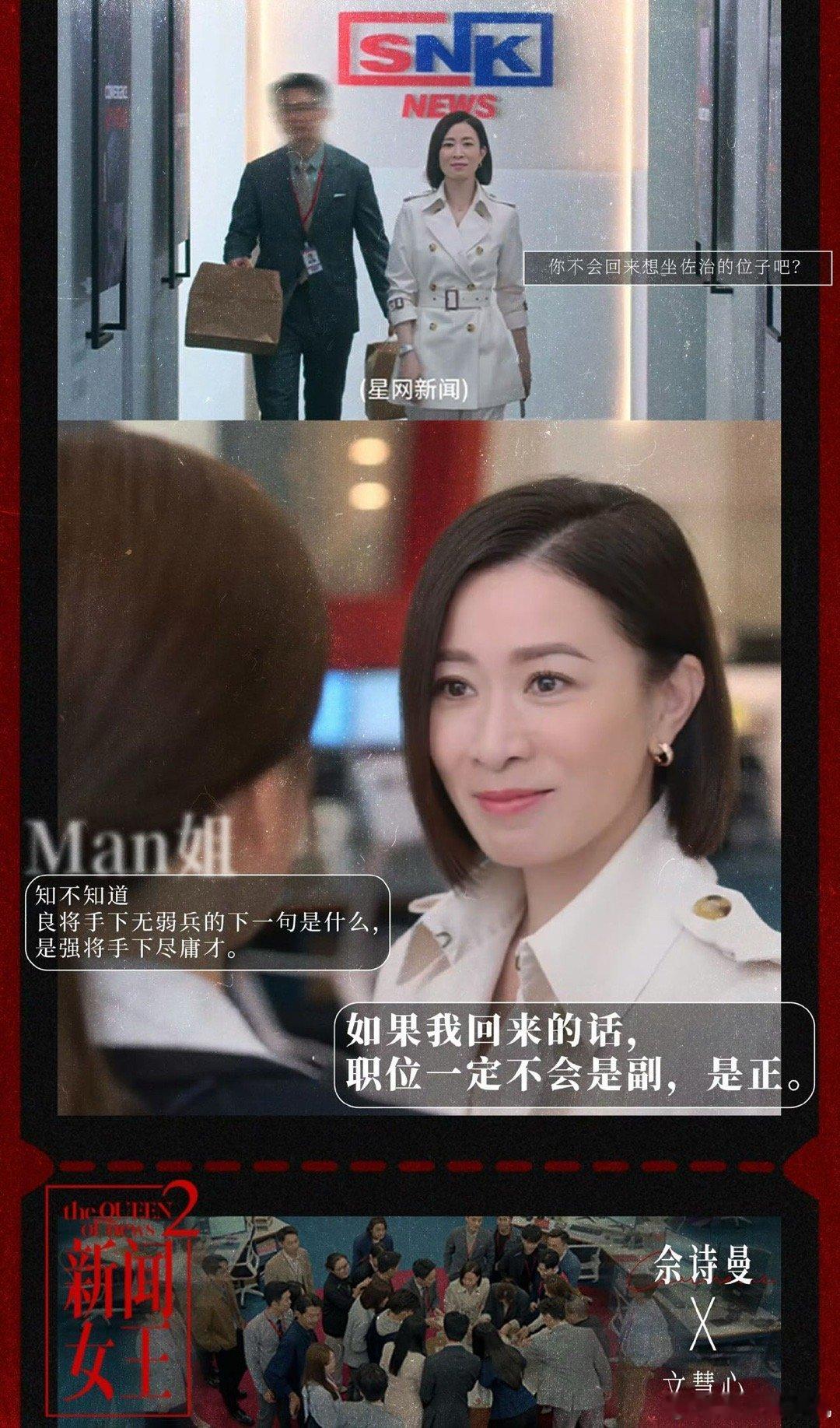 野心上面长了一个文慧心 看《新闻女王2》,最让我记住的不是剧情反转,而是佘诗曼演绎的文慧心,那种带着温度的野心。她的眼神里有锋芒,却不过界,停顿之间都是权衡与判断,把权力游戏玩得漂亮又克制。