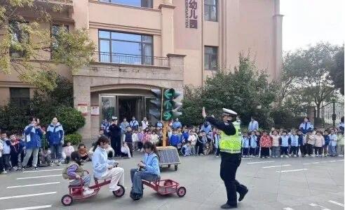“警”盯安全,一路“童”行——西咸公安持续开展安全宣讲进校园活动 为进一步切实提升幼儿交通安全意识和自我防护能力,筑牢校园交通安全防线。10月30日,西咸新区公安局交通管理大队执勤三中队走进辖区星河湾星慧幼儿园,开展了一场生动有趣的交通安全宣传活动,让交通安全理念在孩子们心中生根发芽。 活动中,民警结合幼儿认知特点,通过指挥手势展示、情景模拟、交通安全讲解等形式,围绕“过马路玩手机”、“闯红灯”、“逆行”、“开门杀”、“骑乘电动车不佩戴头盔”、“汽车盲区”等常见交通违法行为引发的危害,进行了详细讲解。 随后,民警组织“小交警体验活动”,让孩子们近距离接触感受警用车辆,模拟交通指挥手势,在角色扮演中加深对交通规则的理解,同时重点提醒幼儿不乘坐无牌无证车辆、乘车系好安全带等安全常识,引导孩子们养成良好出行习惯。 “金吒木吒哪吒,平安出行才能回家!”民警结合幼儿日常出行场景,采用多种形式开展教学,通过图文展示、实物讲解,普及指示、警示、禁止三类交通标志的含义;细致讲解人行道及红绿灯功能,教会孩子们识别交通信号、遵守通行规则;现场示范直行、停止等常用交通手势,邀请小朋友上台模拟演练,在互动中掌握安全出行要点。 增强安全意识,构建平安校园。西咸公安将持续深化“平安校园”举措,创新宣传形式、丰富宣讲内容,推动交通安全知识融入校园日常,全力护航学生健康成长。(张楚翌 侯启龙)