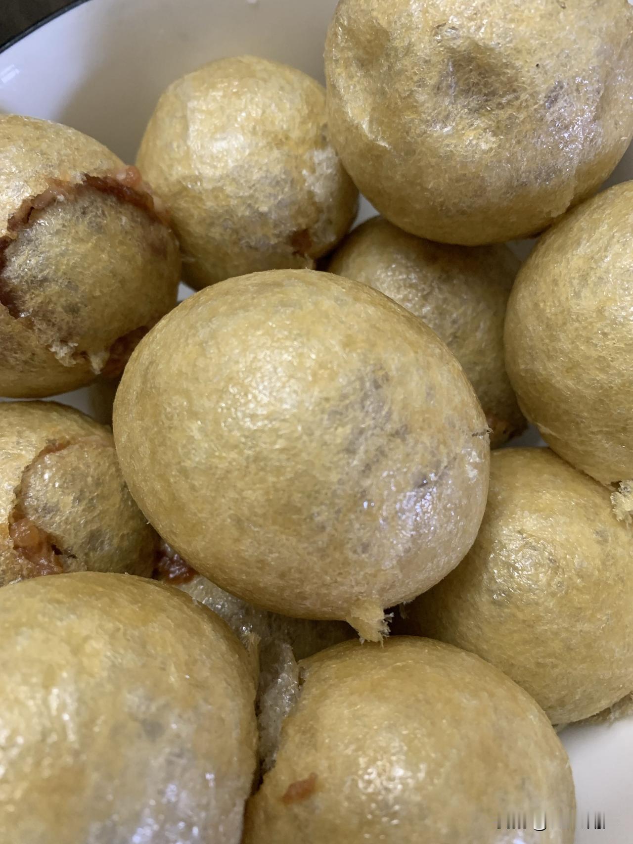 这个肉酿面筋,属于无锡菜里的硬菜了吧,以前过年基本上家家户户都要酿面筋,做蛋饺。