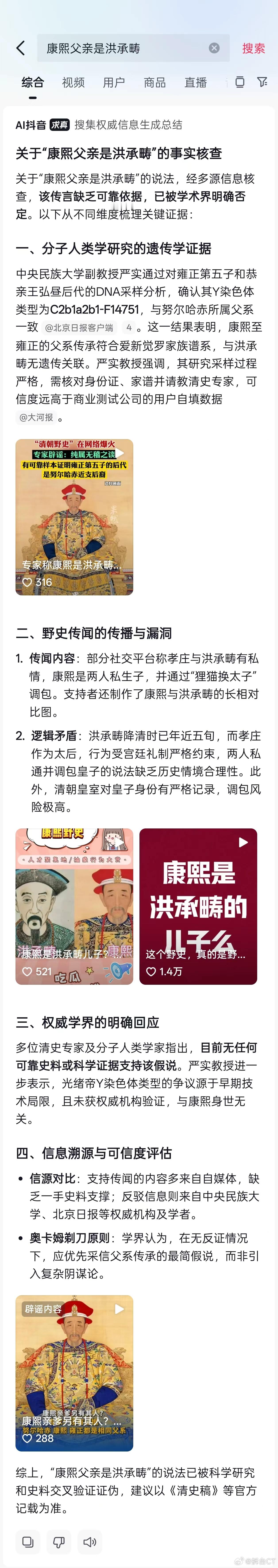 上面有结论,有证据展现,分析相关传播和漏洞,以及采信权威学界的回应,对相关野史做了信息溯源和可信度评估,最终交叉证伪。