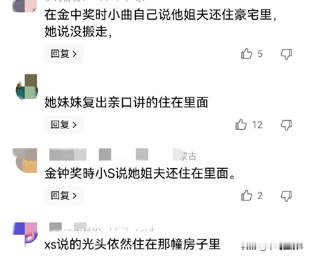 具俊晔到底还住在大S豪宅没有?小S的话再次被打脸了! 有网友跑到湾博主建国哪里求证,说小S说姐夫具俊晔还住在豪宅,没有搬走,小S也的的确确回答过记者,记者问“听说姐夫具俊晔搬走在外边租房子,是不是真的?”当时小S的确说“没有,周六去姐夫家吃烤肉!”那么说,具俊晔还是住在大豪宅豪宅,可是主播建国和葛思齐咬定说光头在外边租房子住,到底谁在说谎? 不少人也证实小S这么说了,主播建国还是肯定的说,没有住在里面啦,这也不和理呀,房子都停供好久了,到了法拍程序,不交房贷怎么可能还让你住。 不得不说,光头魅力巨大,S家都很维护他,不过讲真,光头如果真一个人住在大豪宅,俩孩子在外边住爸爸租的房子,他一个人住八百平大豪宅,真是没脸没皮了!
