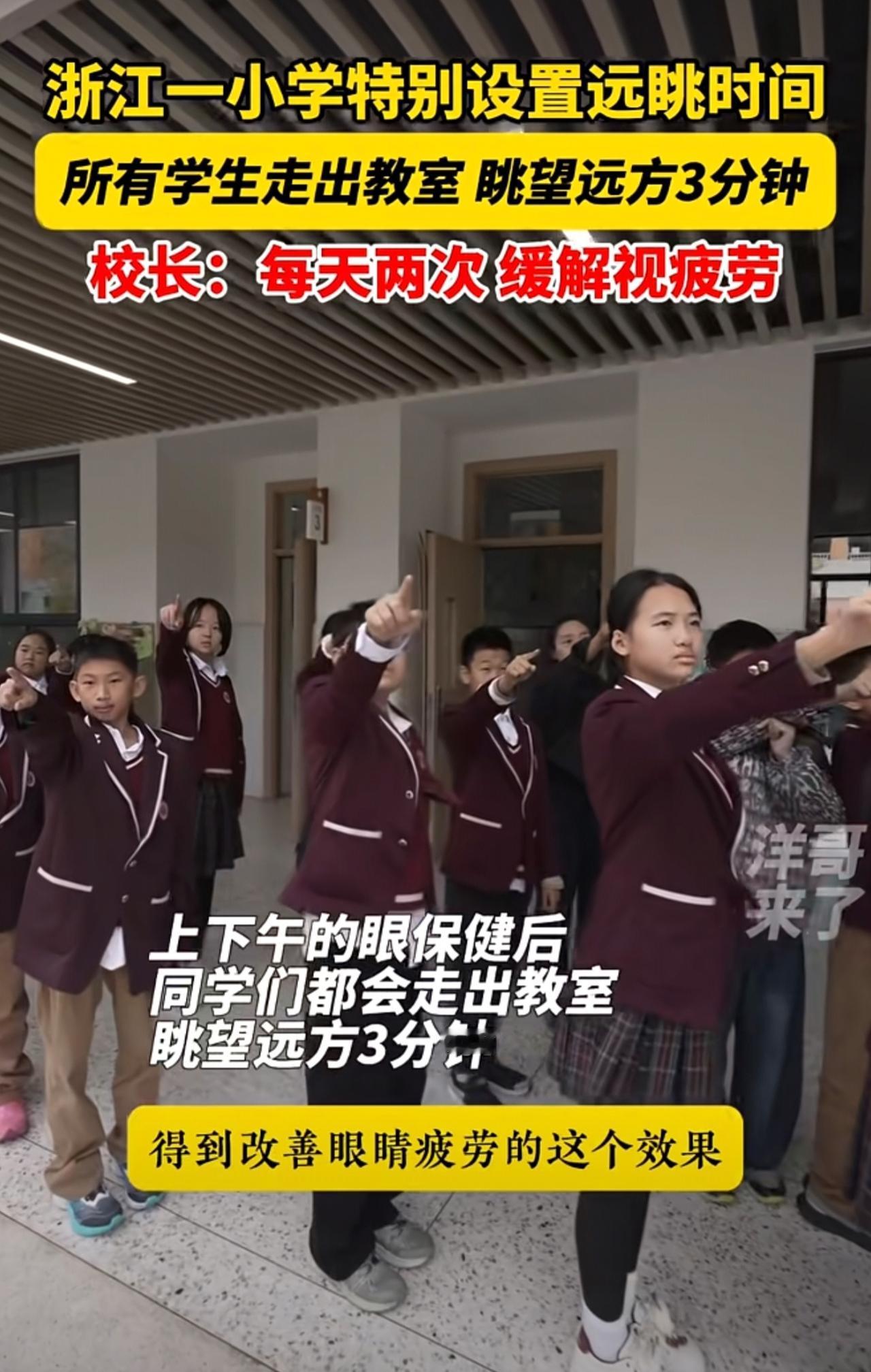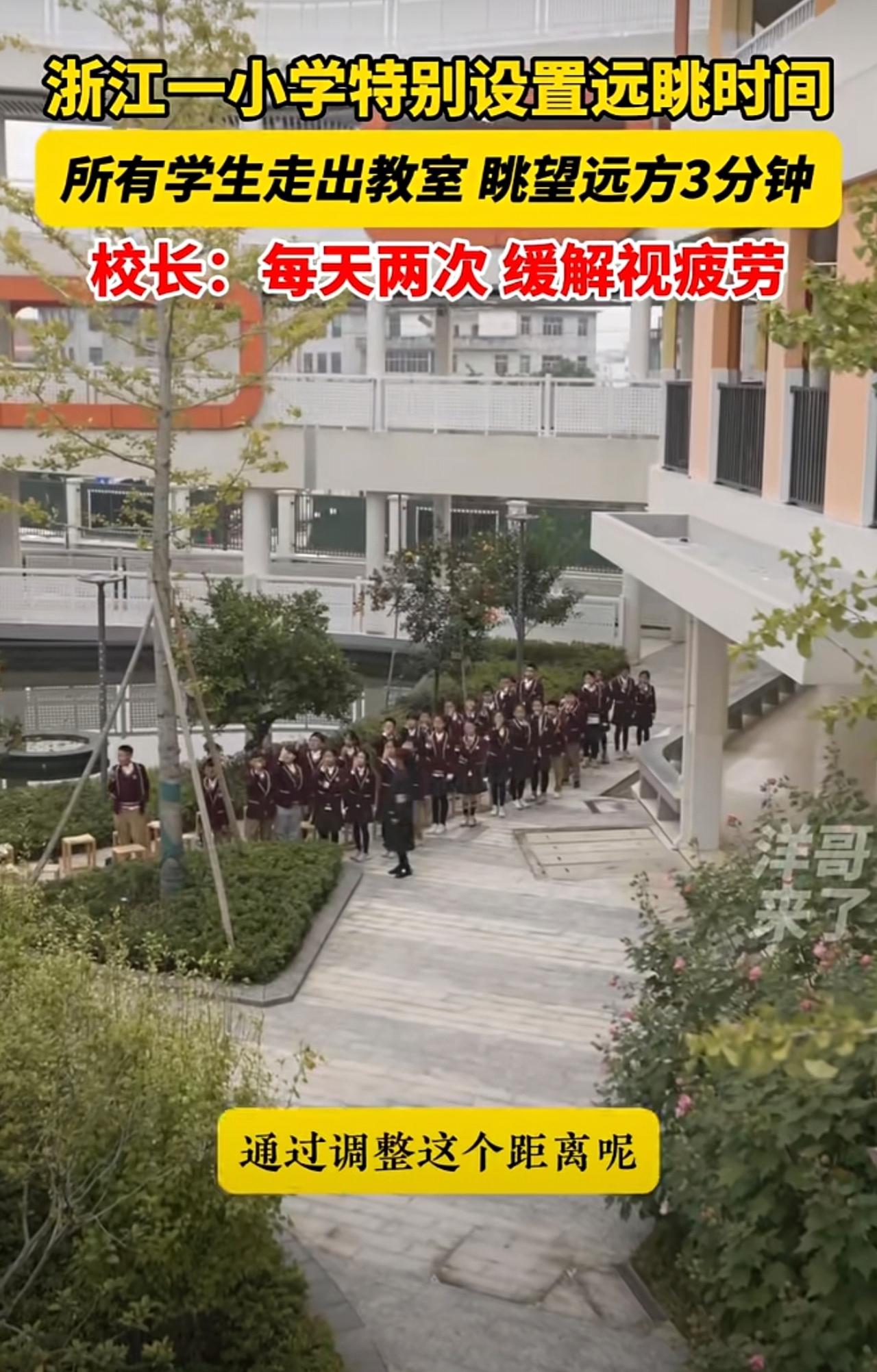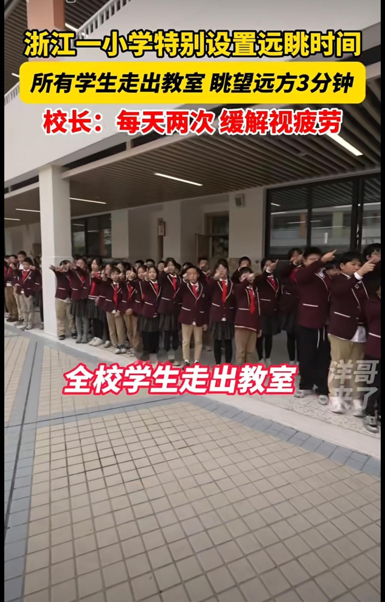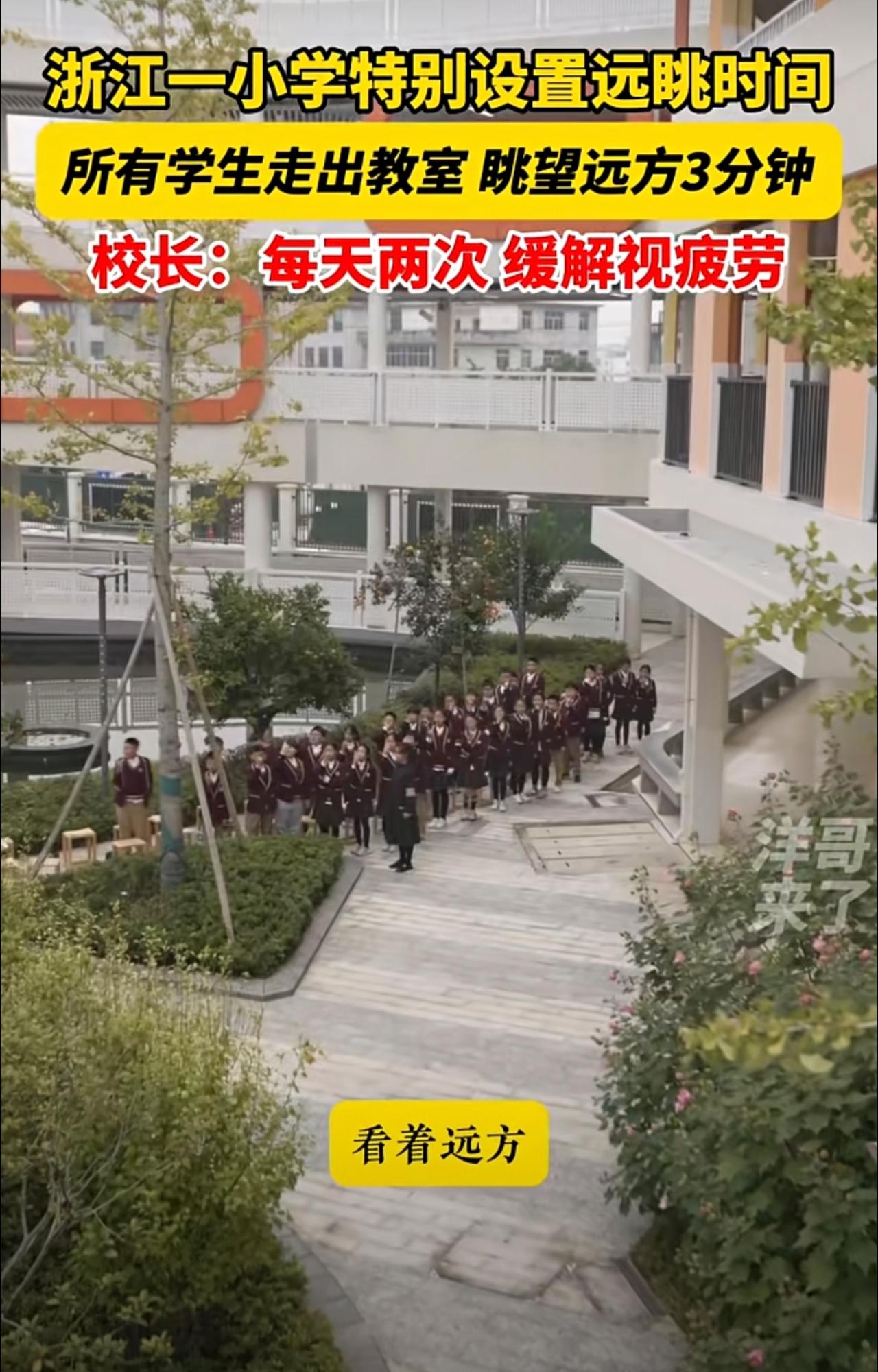 走出教室去远眺!浙江一小学特别开设远眺时间,所有学生走出教室眺望不远处的山,缓解视疲劳。@永康市方岩景区小学 近视 校园生活 永康 小学开设远眺时间 金华