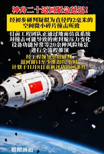 全球速度最快的航天救援记录或将在中国诞生!但事实上却是我们最不希望看到的结果,目前神舟二十号的损伤情况还在评估中,央视新闻公布神舟二十号被空间碎片撞击后,全中国人民都非常揪心,飞船损伤到底如何,神舟二十号什么时候可以安全返回地球?[给你小心心] 11月5日晚,无数观众在屏幕前等待神舟二十号返回直播时,收到任务推迟的突发消息,因飞船可能遭遇空间微小碎片撞击,为确保安全,决定暂不返回,这一消息迅速引发广泛关注。 这些被称为“太空尘埃”的碎片,虽体积小,却是航天器的潜在威胁,它们多为退役卫星部件、火箭残骸或太空作业遗留物,最小的直径不足一厘米。 在地球轨道上,这类碎片数量已达数亿,其飞行速度接近每秒10公里,远超子弹,一旦与飞船相撞,释放的能量足以击穿舱壁或损毁关键设备。 为何一次微小撞击就需推迟返回?专家解释,返回舱的热防护层和推进系统若受损,将直接影响穿越大气层阶段的安全。 尽管初步分析显示撞击影响有限,但中国航天始终坚持“不带隐患返航”。 目前,地面控制中心正通过机械臂搭载的高清相机仔细检查飞船外壳,并同步分析各类传感器数据,确保不遗漏任何细微损伤。 面对此类突发情况,中国航天已构建多重保障机制,当前,天宫空间站处于“三舱三船”稳定运行状态。 神舟二十一号作为在轨备份飞船,可在必要时启动救援程序,约一周内即可执行任务。 此外空间站内生活物资储备充足,六名航天员具备长期驻留条件,可安心等待最终评估结果。 实际上,中国航天对太空碎片风险早有预案,自神舟十七号任务起,航天员已多次出舱加装防护装置,提升空间站防护能力。 飞船本身也采用多层防护设计,能有效缓冲撞击能量,我国还建立了“滚动待命”机制:即在轨执行任务飞船的背后,另一艘飞船已在地面完成测试,随时可发射支援。 此次返回推迟,表面是应对突发状况,实则反映出中国航天成熟的安全管理体系,它以实际行动传递出“航天员安全至上”的原则,每一步的审慎,都是为了确保航天员能够平安归来。 航天员的安全始终牵动人心,在这次等待中,无数祝福汇聚,期盼他们一切顺利,早日回家。 神舟二十号返回任务推迟的消息一出来,网上立马就炸开锅了,发现大家的关注点虽然不一样,但担心和祝福都是真心的。 “太空里的事,小心一万次都不为过,毕竟咱们的航天员平平安安回家才是头等大事。” “好家伙,一粒芝麻大小的东西,速度居然比子弹快八倍,这撞上去的力道跟炮弹似的,想想都后怕。以前真不知道太空垃圾这么危险。” “看到说神舟二十一号飞船就在旁边待命,心里顿时踏实不少。这不就是给神舟二十号上了个‘双保险’吗?说明咱们的应急体系想得很周全。” “工程师们肯定在加班加点排查,压力巨大,我们在这干着急,他们是在实打实地解决问题,每一道程序都不能省。” “空间站里物资充足,别说多住几天,就是长期生活也完全没问题,他们之前在轨交接,两个乘组一起在站里都待过,生活保障系统经受住考验了。” 如果让你给正在空间站耐心等待回家的神舟二十号航天员乘组写一句留言,你最想对他们说什么呢?欢迎在评论区分享你的祝福和心声。 信息来源:澎湃新闻 科技日报