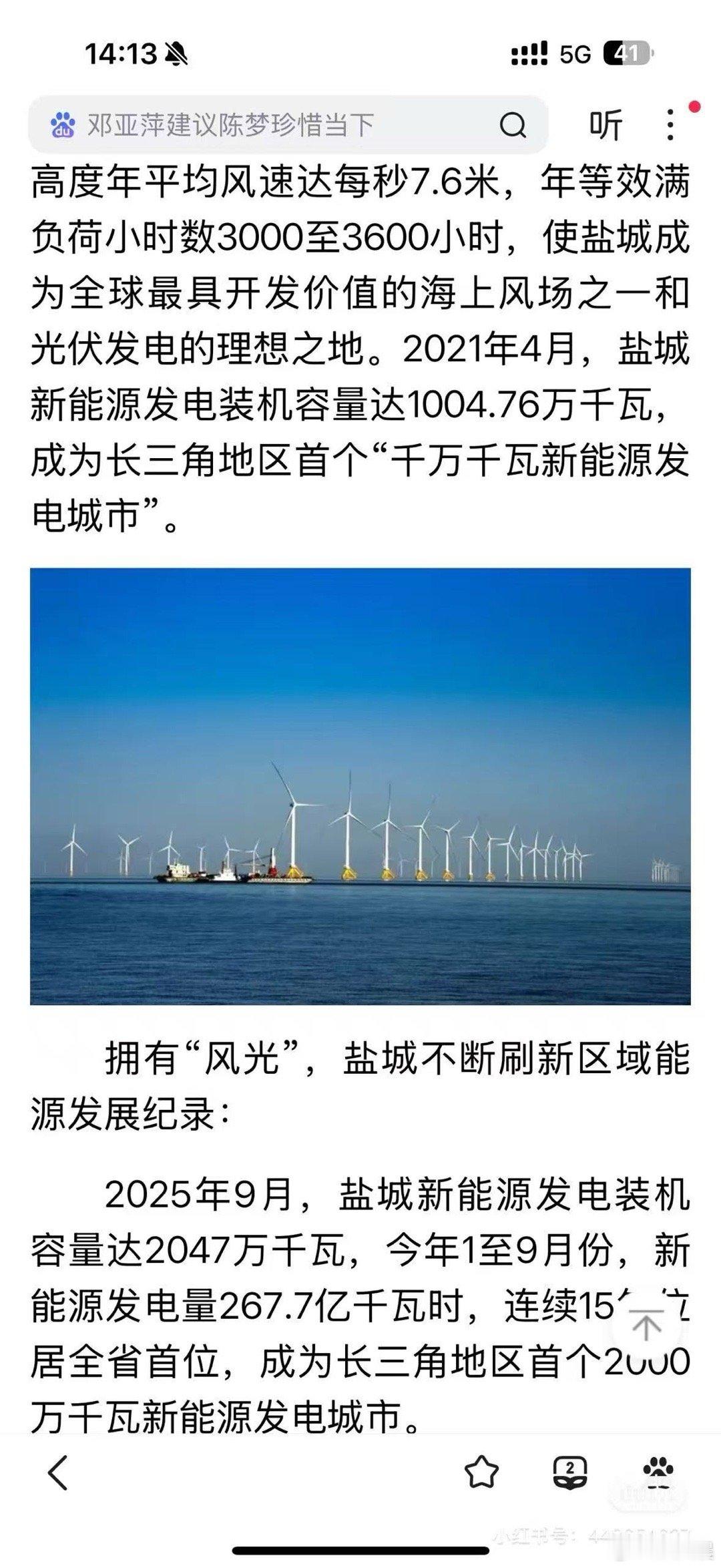 张凌赫发了风力发电图张凌赫这波联动太惊喜!盐城海上风场美照,竟是参与气候行动纪录