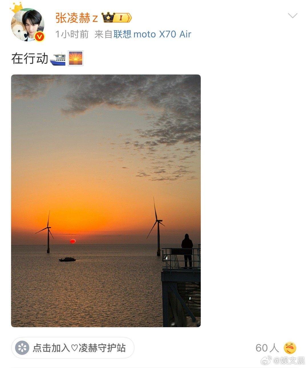 张凌赫发了风力发电图张凌赫这波联动太惊喜!盐城海上风场美照,竟是参与气候行动纪录片拍摄,为环保助力,期待值拉满!