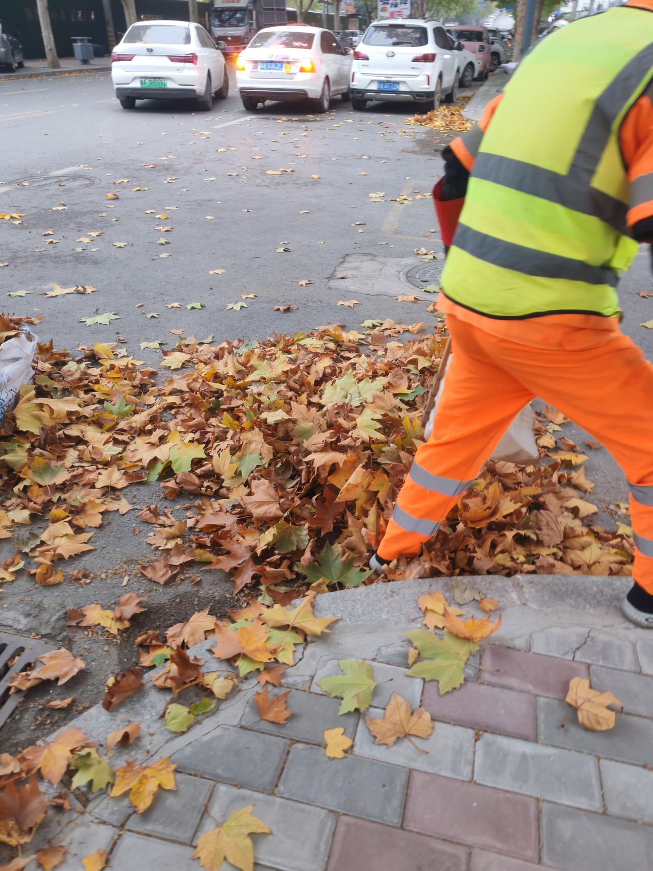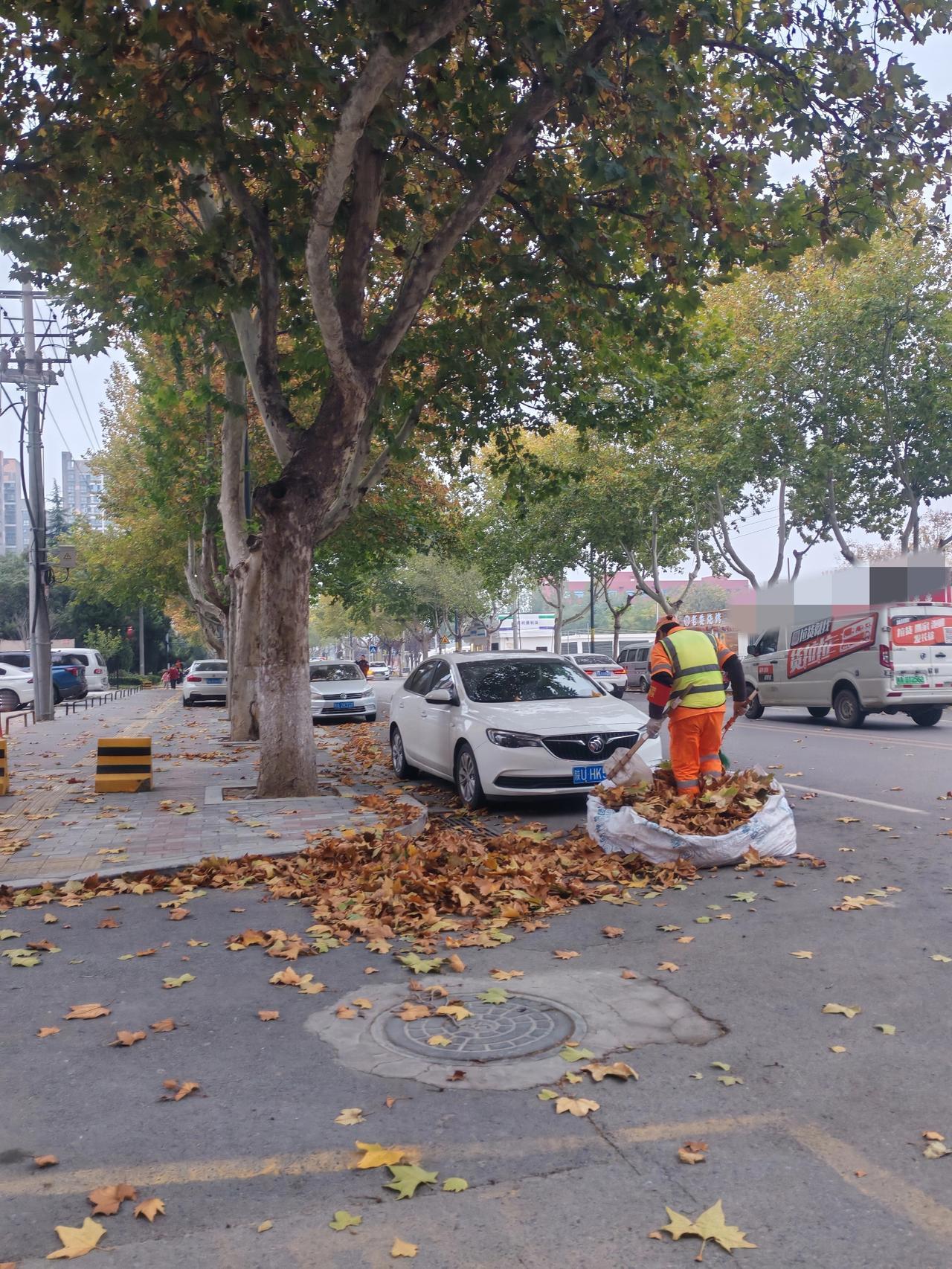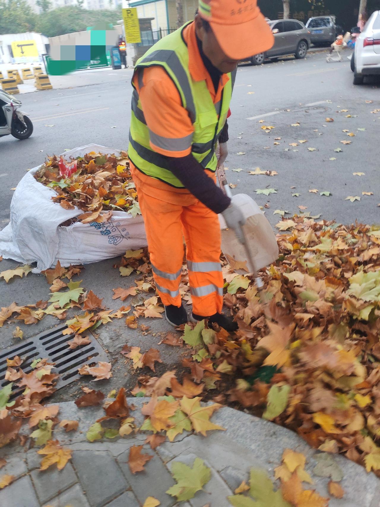 这天气清洁工难啊 11月6日,今天的西安降温了,天阴沉沉的,寒风呼呼的吹,树上的黄叶像蝴蝶似的在空中打旋翻腾,一会儿地上就铺了厚厚的一层。 我们这座城市很多街道广种梧桐,秋冬交替季节,正是落叶时,刚看到这个清洁工大叔不停的扫梧桐叶。 我上前跟他聊了几句,大叔告诉我今天风大,到处都是树叶,他扫第5次了,扫了之后还要运走,他们的组长各路段全天巡查几次,他们清洁工一刻都不敢松懈。 看来现在干啥工作都不容易,还得感谢这些清洁工,有了他们的辛勤付出,我们这座城市才能保持干净整洁的面貌。