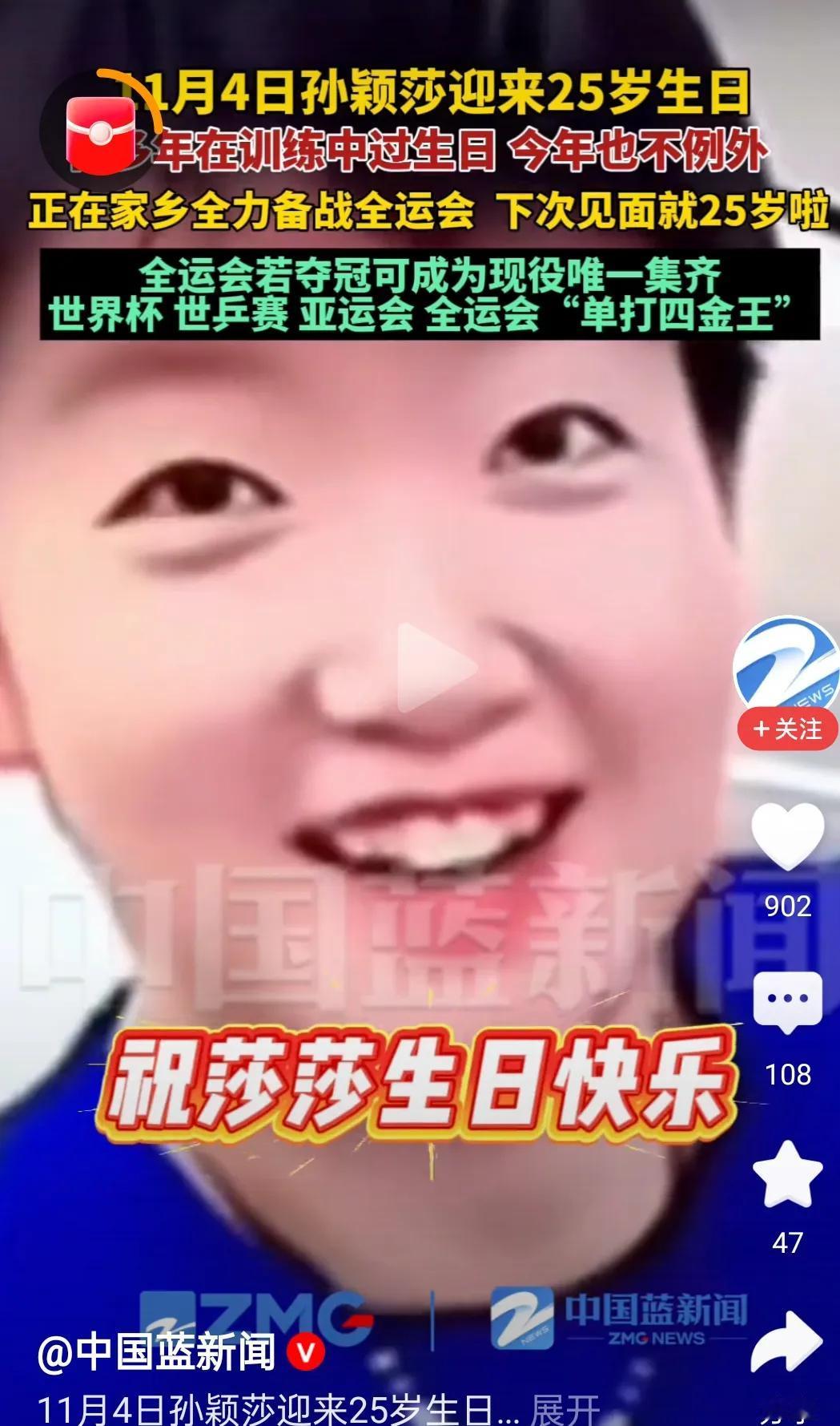 孙颖莎25岁生日全力备战全运会。 她上届全运会获女单亚军、女团铜牌,此次仅战女单与女团,目标明确。 本赛季她9进女单决赛夺6冠,对阵王曼昱18胜10负,状态处于高峰。 封闭备战中,她每日加练30分钟,双教练团队精准助力,打磨细节。 赛场从无捷径,25岁的她以训练为礼,用过往战绩与极致努力为底气,这份执着正是顶尖选手的核心底色。球星孙颖莎