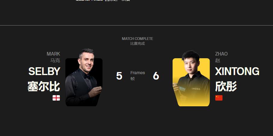 中国确保一个斯诺克决赛名额。 刚刚结束了斯诺克国际锦标赛的2场1/4决赛,两名中国选手全部战胜对手杀进4强。 吴宜泽6-0霍金斯; 赵心童6-5塞尔比。 吴宜泽的比赛没有什么好说的,赵心童对塞尔比还有些惊险。 前四局,塞尔比3-1领先,赵心童再追一局,打成2-3。塞尔比再赢一局,保持2局领先。 赵心童连赢3局,5-4反超比分拿到赛点。 塞尔比可不是等闲之辈,他单杆83分,扳回一个赛点,将大比分打成5-5平。 赵心童赢下最后一局,惊险地以6-5获得胜利。 巧的是,在国锦赛的半决赛,将由赵心童对阵吴宜泽,虽然状态很好的两名中国选手失去了会师决赛的机会,但确保了一个决赛名额。
