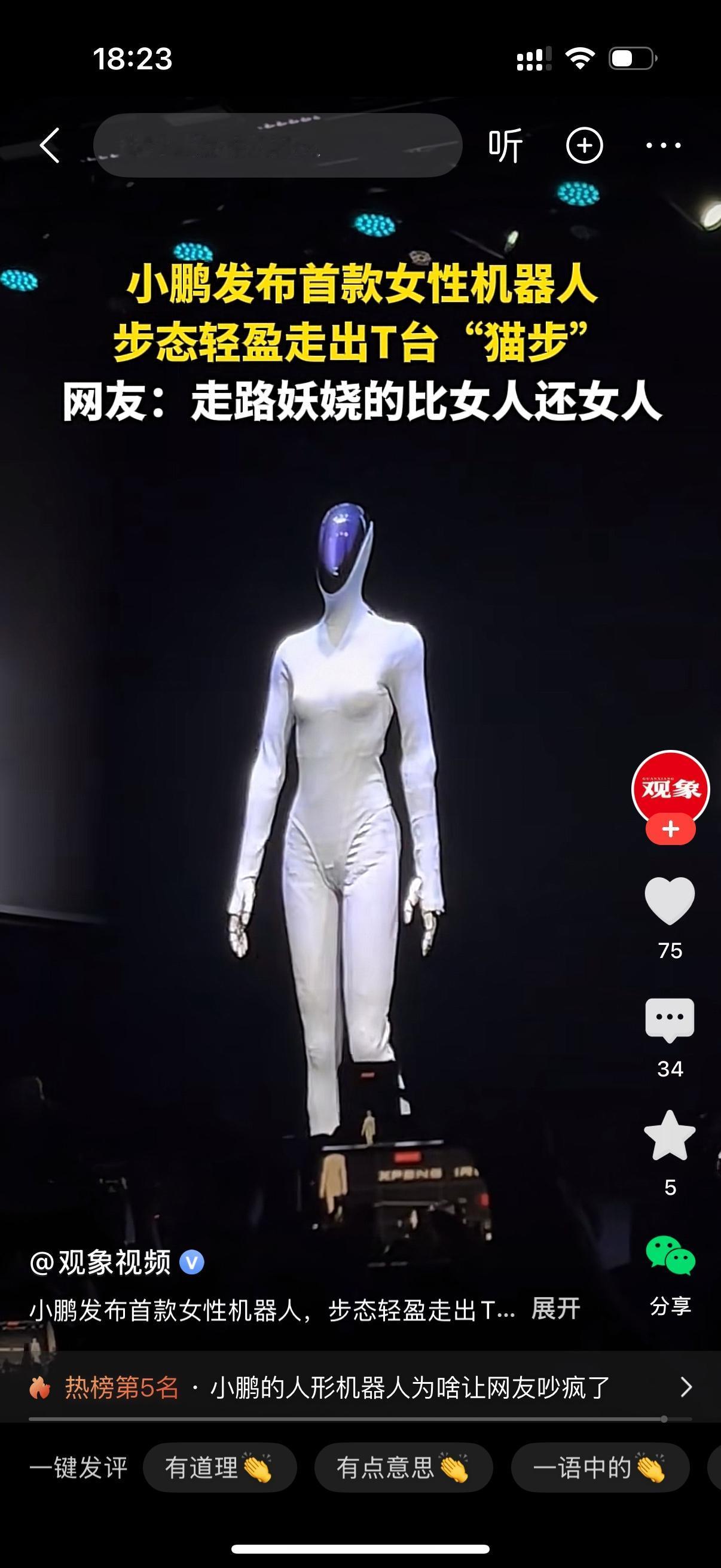小鹏发布首款女性机器人,好逼真啊。它居然步态轻盈走出T台猫步,走路妖娆的比女人还女人。这可以说是第一梯队的实力。机器人板块绝对又要高潮一阵子了。毕竟也调整近一个月了,该展示肌肉了。明天最靓的板块非人行机器人莫属。