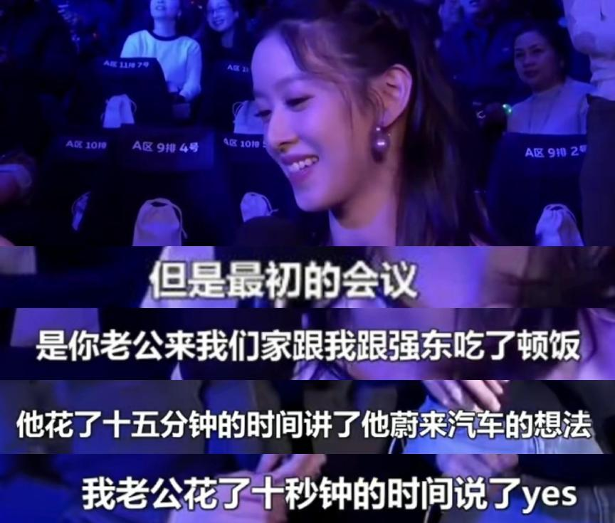 京东老板娘章泽天在蔚来汽车新品发布会上还曾提到过这件事,称:“最初的会议是李斌来我们家,跟我跟强东吃了顿饭。他花了15分钟讲他对蔚来汽车的想法,我老公花了10秒说yes。”