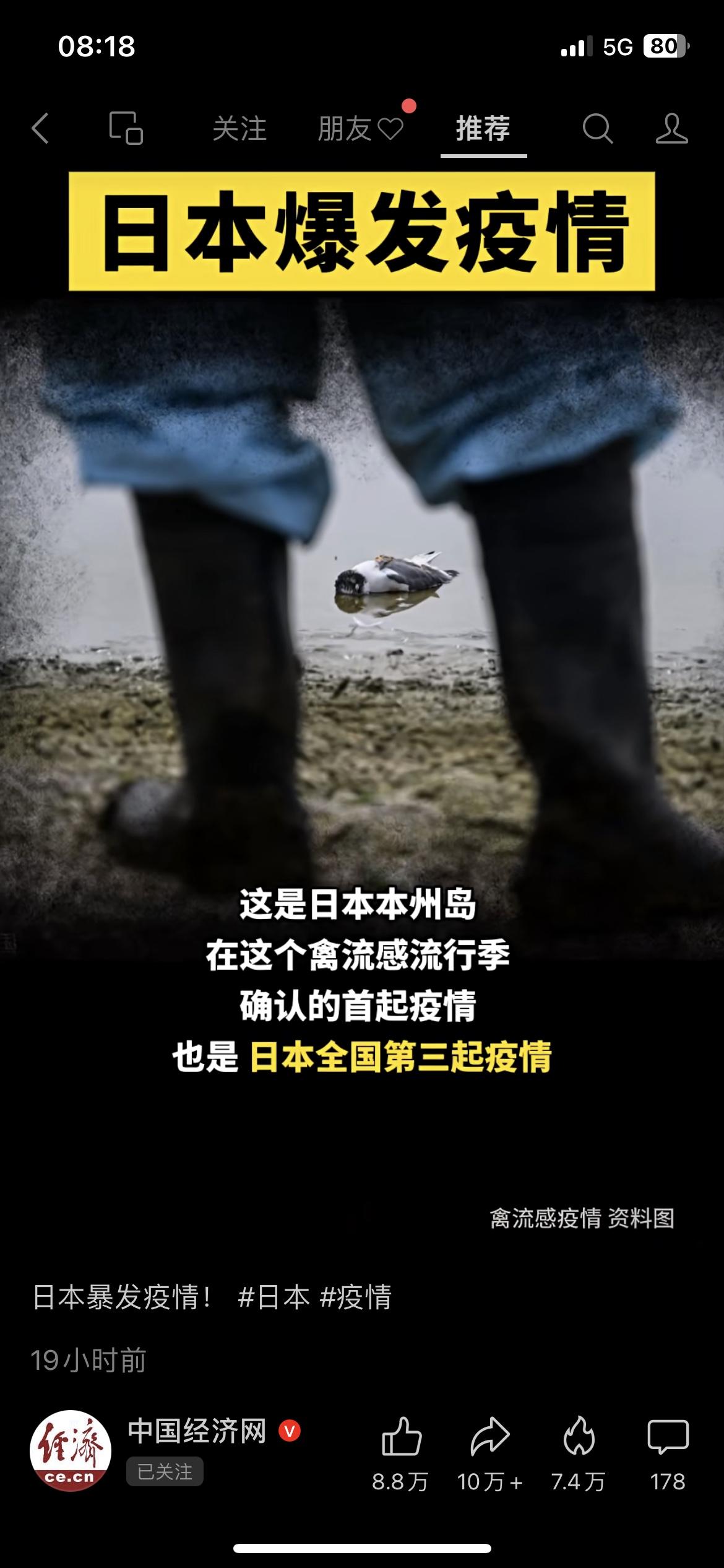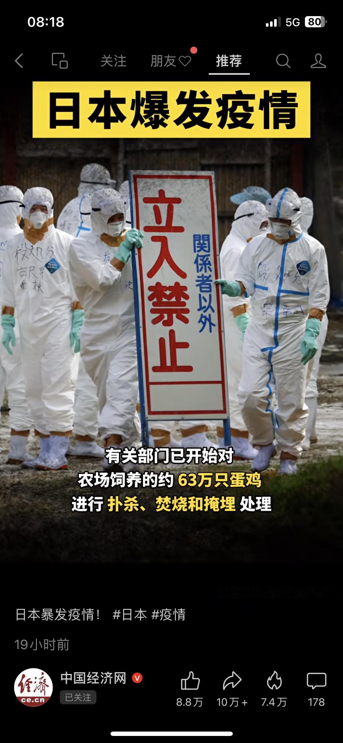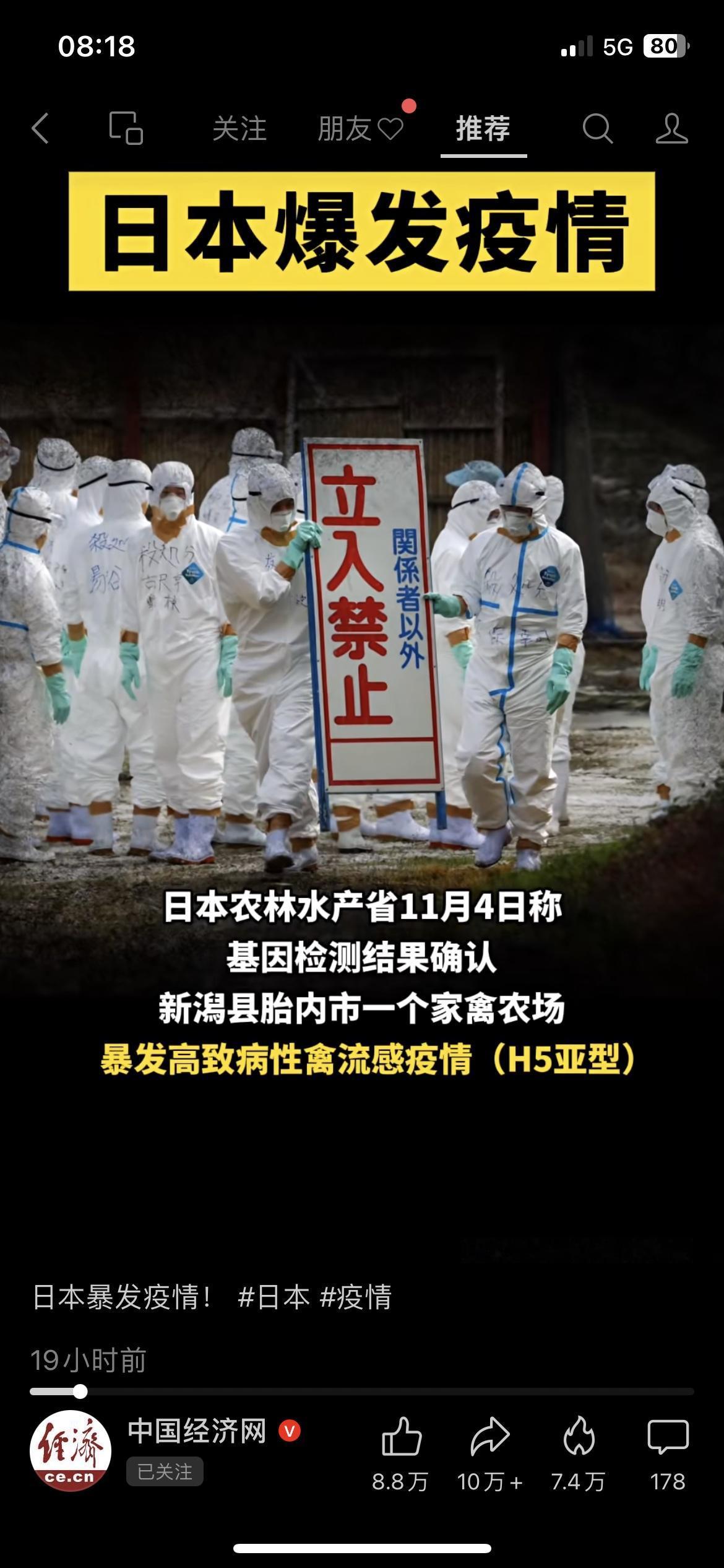 19小时前突发!日本禽流感疯传,63万鸡全烧光19小时前刚爆的狠料!日本新潟县杀出H5亚型禽流感——这是本州岛首起、全国第三波疫情! 农场63万只蛋鸡直接连窝端:全扑杀、烧光再埋,现场防护服堆成队,牌子直接怼“闲杂人别进”! 这波高危禽流感,会不会影响咱们进口禽蛋的供应? 近期建议留意日本进口禽肉蛋的检疫信息!转给家里买菜的人,盯紧货架标签~日本病毒大爆 日本流感 日本禽流感