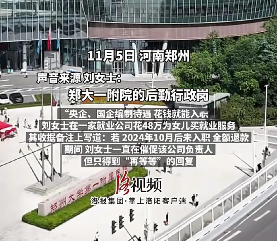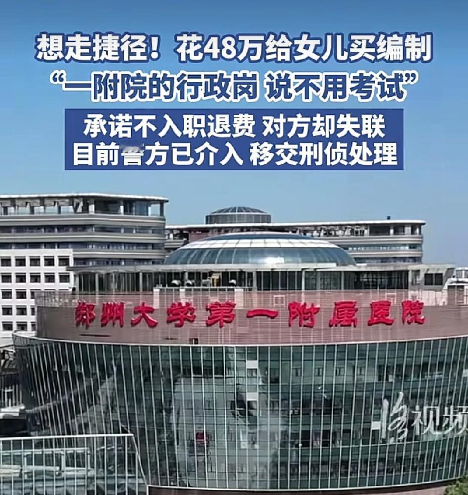 想走捷径花48万给女儿买编制被骗! 河南刘女士在一家就业公司花48万为女儿买一附院的后勤行政岗,说只要体检合格不用考试,承诺不入职全额退款,结果迟迟等不到通知上班,打电话查问也是回复再等等。 我想说逢编必考!是常识啊多么简单明了的四个字。 如果真的歪打正着成功了,它还报警吗?这种事就不应该惯着,如果你不去占便宜,不去投机取巧,就不会发生。天上掉馅饼的事,永远砸不到你! 现在孩子大学毕业了找不到工作,当父母的担心操心被骗子利用,想尽了办法48万白花了。