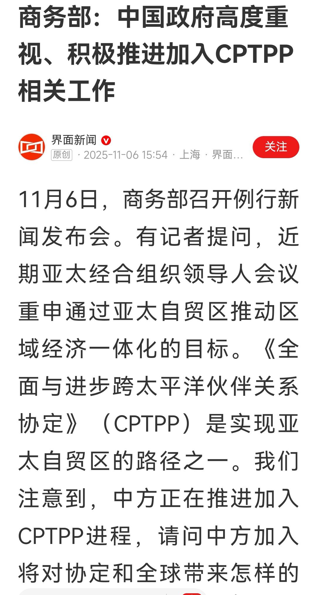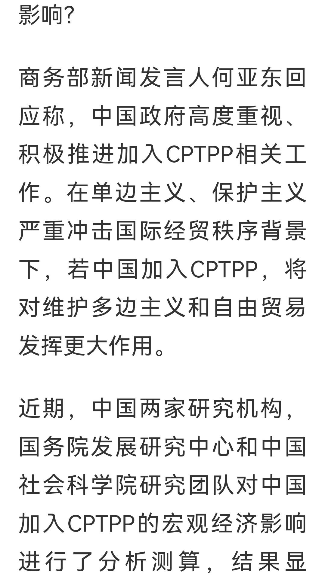 特别希望中国早日加入CPTTP,绝对是一个多赢的局面,WTO已经过气了,地区间的自由贸易协定正方兴未艾。中国加入CPTTP正当时,但是,需要和成员国的支持和同意,不管是哪个成员国,都要认真对待,以诚相待,吹牛不行,拿大棒子也不行。