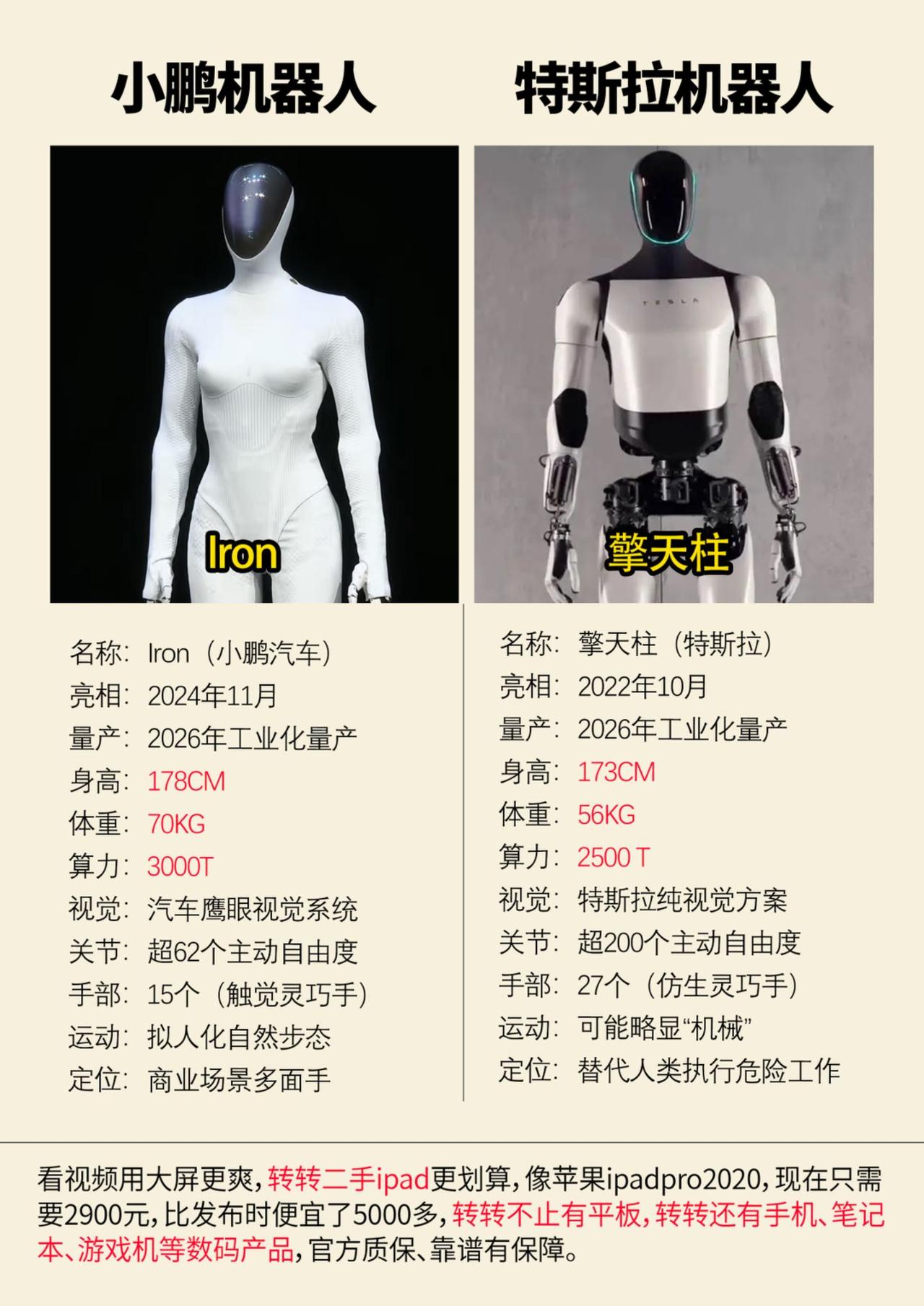 小鹏机器人和特斯拉机器人小鹏汽车 小鹏机器人 特斯拉