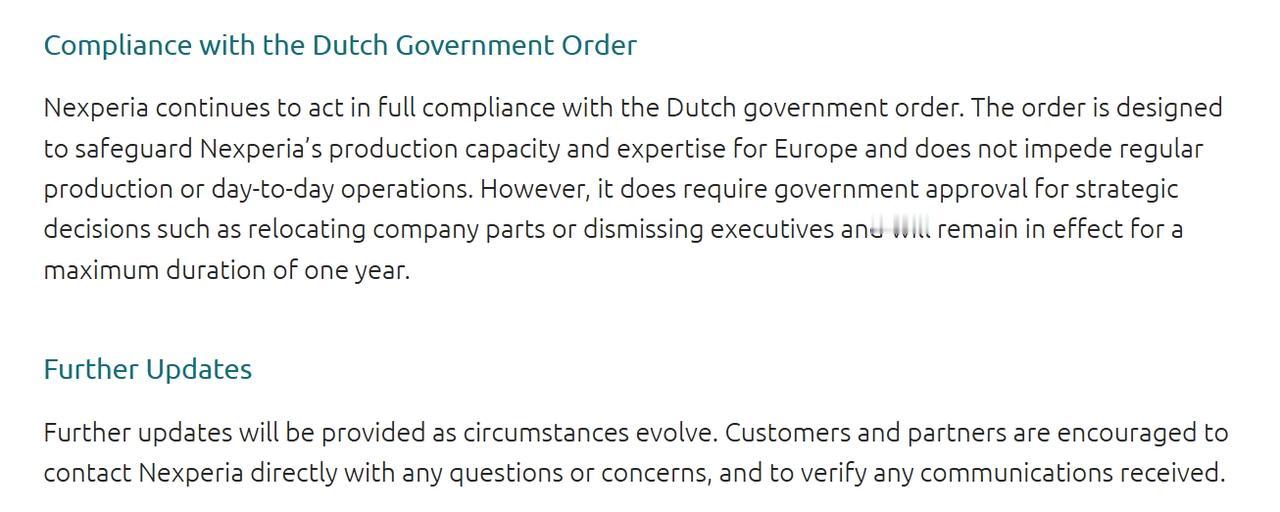 荷兰安世半导体,11月5日在官网上更新了一条消息。回应了目前事件进展,以及他们对