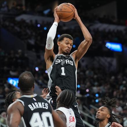 过去两场比赛,文班亚马被限制了? 对阵太阳:14中4,9分9篮板4盖帽 对阵湖人:14中5,19分8篮板3助攻 在这之前的5场比赛,文班亚马场均30.2分14.6篮板3.4助攻4.8盖帽,大有竞争MVP的架势,且的确在球场上展现了高人一等的能力。 但对阵太阳,文班亚马被限制了。 太阳的方式是无脑包夹,用锋线顶文班亚马的腰眼,助攻他下盘虚浮的弱点,文班亚马喜欢运球进攻,但遭遇包夹后,只要下球就容易被断掉,后面还有人卡住双腿,拿球就只能转身投篮,或者把球给出去,这个方式,让文班亚马打的非常难受。 湖人队则是现学现炒,防文班效果最好的不是艾顿,反倒是八村塁和范德彪,就顶住下盘,再由几个后卫骚扰掏球,但这一场裁判比较给面子,湖人的下手被吹了很多犯规,打太阳文班亚马0罚球,打湖人则拿到了11次罚球,因此得分也多了10分。 这两场比赛,一定是后面其他球队面对马刺时的防守样本,马刺其他人的级别不够,目前没有决定比赛胜负的能力,只要限制了文班亚马,这比赛就有机会拿走胜利,因此文班的双腿,一定是本赛季被重点针对的位置,他的伤病风险,一定程度上来回来源于此。