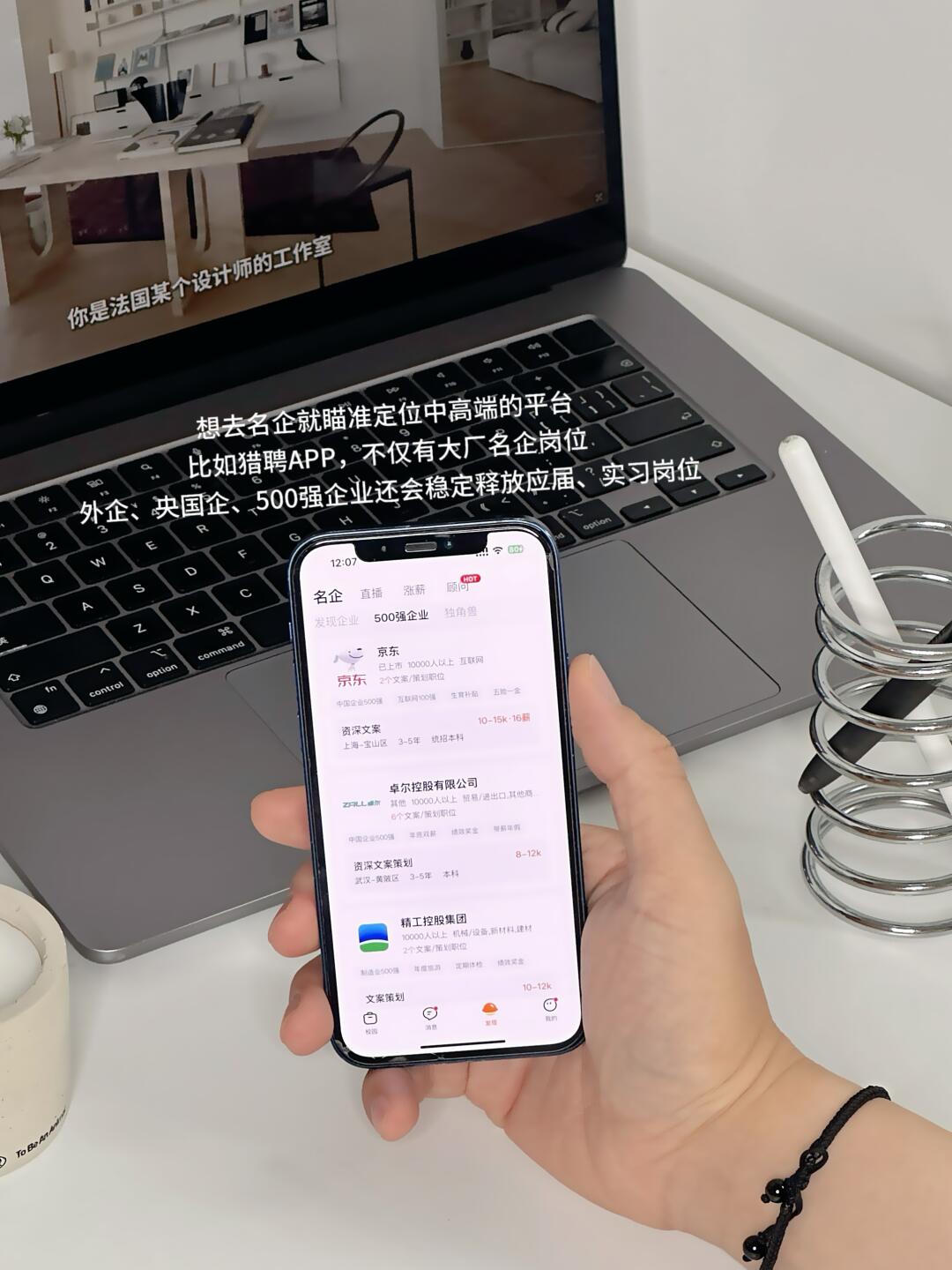 想去名企大厂,就瞄准定位中高端的平台,比如猎聘APP有很多大厂名企岗位和猎头岗位。还专门给学生党开绿灯,外企、央国企、500强企业会稳定释放应届、实习岗,还能按专业匹配对口工作