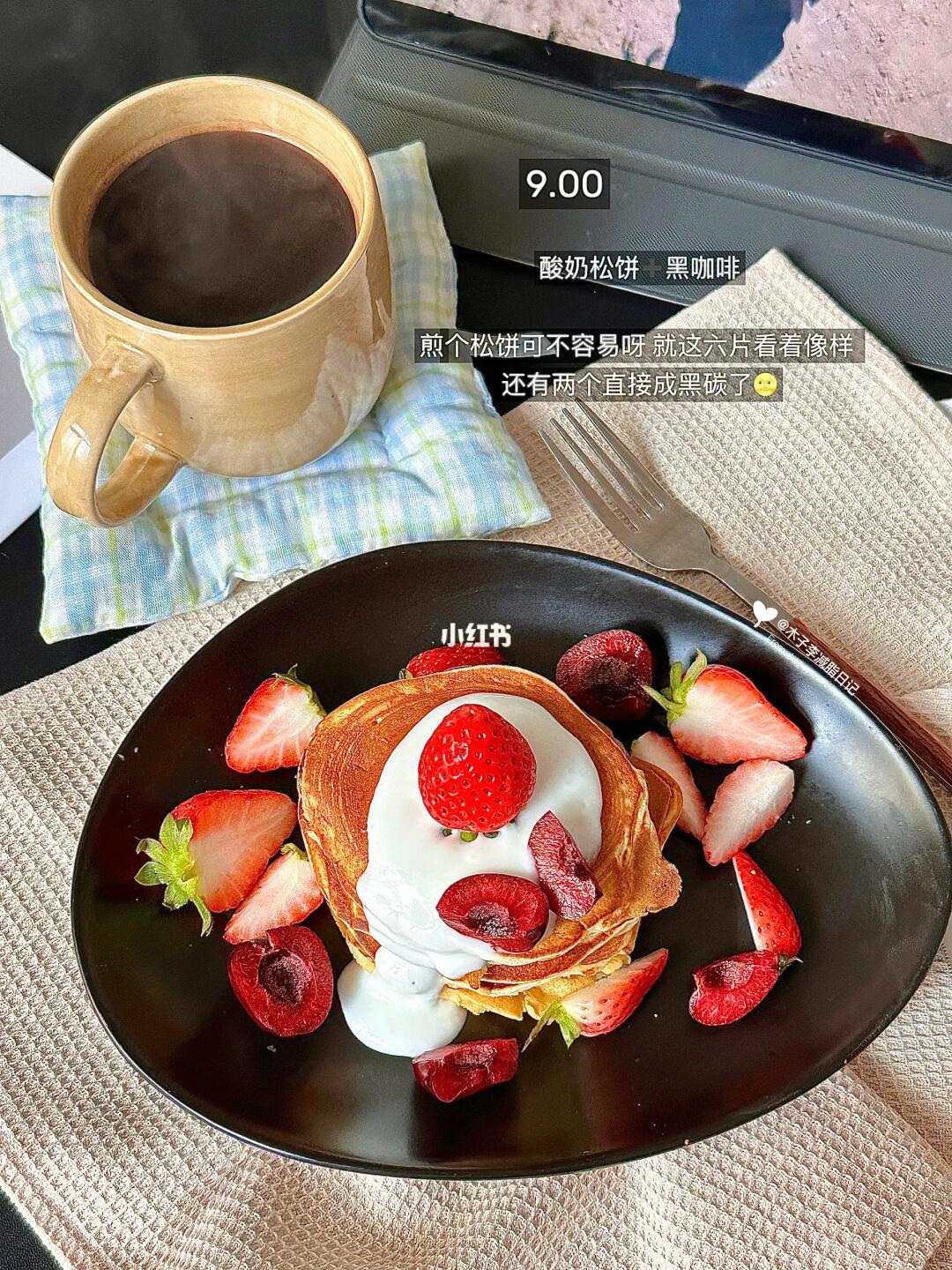 初始体重120斤 今天体重96斤 目标80斤 - 🌀早餐:草莓酸奶松饼➕黑咖啡 🌀午餐:羊肉面条 🌀晚餐:蓝莓丹麦酥一整个 运动🈚 - 超爱吃软乎乎的松饼 不仅好吃制作过程也好治愈我 舀一勺子松饼液倒在平底锅上 看着它慢慢冒出泡 虽然很考验耐心 但真的好治愈 配热咖啡满足! 中午吃的羊肉面条 冬天就要多吃羊肉呀