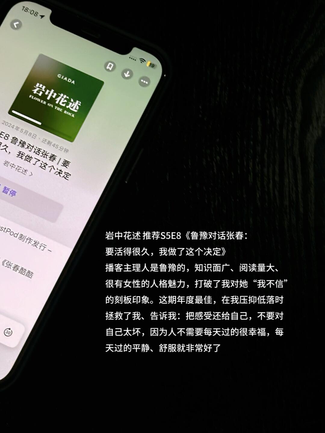播客主理人是鲁豫,知识面广、阅读量大、很有女性魅力,打破了我对她“我不信”的刻板印象。这期年度最佳,在我压抑低落时拯救我、告诉我:把感受还给自己,不要对自己太坏,因为人不需要每天过的很幸福,每天过的平静、舒服就够了