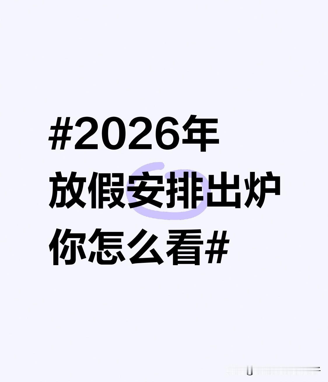 2026年放假安排出炉 你怎么看 2026年放假安排出炉,这可太让人有盼头了!别的不说,春节放9天假太赞了,能有更充裕的时间走亲访友、好好放松。不过调休还是老样子,像春节要补两天班,五一、国庆也都得调休上班。 以五一为例,虽然放5天,但之后周六还得上班,连着上六天班想想都头大。但总体来说,这么提前公布放假安排,能让大家有足够时间做旅行、聚会等计划。就看这一年,咱能把这些假期利用得咋样啦。