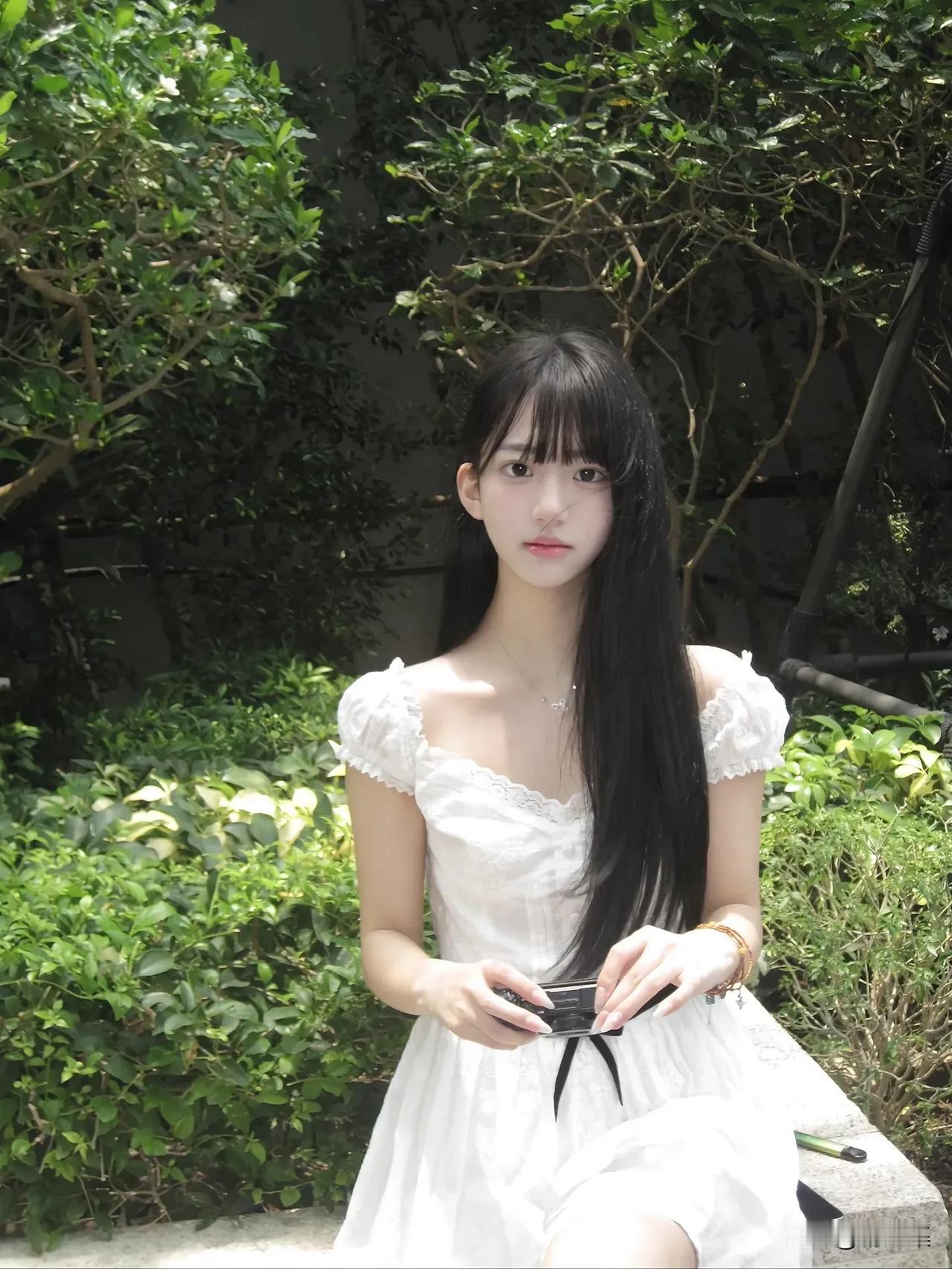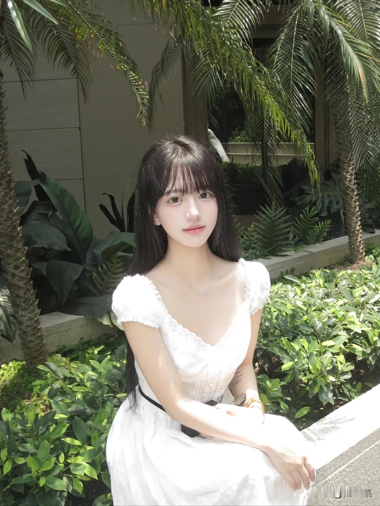 夏日清新穿搭,白色连衣裙与绿植的完美搭配