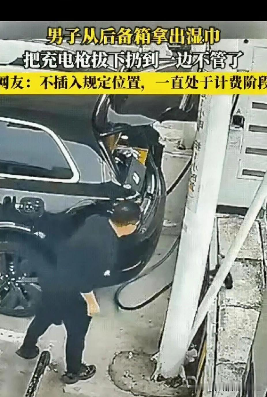 令人气愤!男子在给车子充电,完事后拔取充电枪时,先用湿巾垫手,然后再取下来! 如此做法无可厚非,讲卫生是好事!但接下来的一幕,令人大跌眼镜! 你猜他怎么着?这位老兄把充电枪从车上拔下来后,手腕轻轻一甩,那条刚刚充完电、还带着余温的充电枪就像条没人要的废线,“啪”地一声被扔在了满是灰尘的地上。他倒是潇洒地转身开车走了,留下那个充电枪孤零零躺在那里,接口说不定正对着泥水坑。 表面看,他用湿巾垫手是讲究个人卫生,怕接触公共设备上的细菌。充电枪每天被不同的人摸来摸去,爱干净一点没错。可问题在于,他的“卫生”只限于自己那双手。充电枪被扔在地上,下一个来充电的人怎么办?下一位车主可能是个姑娘,可能是个老人,他们得弯腰从脏兮兮的地上捡起那个沾满污渍的枪头,他们手上的细菌谁在乎?这种“精致利己”式的卫生观,不过是把潜在的污染风险转嫁给了别人,本质上是一种自私。 充电枪可不是随便乱丢的普通物件。国家对于电动汽车充换电设施的安全技术防范有着明确要求,充电设施需要保持良好状态以确保安全使用。你这么随手一扔,万一损坏了充电枪的接口,或者让内部元件受潮进水,下次充电时可能就会接触不良,甚至引发短路风险。想想看,之前不是有车主因为操作充电枪不当,被反弹的充电枪击中嘴唇,直接缝了8针吗?还有那些为了追求所谓更快充电速度,用湿毛巾给充电枪降温的危险把戏,特斯拉官方都不得不站出来警告,说这会干扰温度监测,导致过热或损坏。对公共设施缺乏敬畏之心,一个小小的随意举动,可能埋下不小的安全隐患。 更气人的是,这种行为反映了一种普遍存在的“甩手掌柜”心态。总觉得公共设施有人收拾,自己怎么方便怎么来。网上随便一搜,就能看到各种充电不文明现象:有人充完电就是不归位充电枪,甚至还有人因为等不及,直接去抢夺别人正在使用的充电枪。幸好,我们也看到了正面的例子,山东潍坊一位“充电侠”因为主动将散落的电枪归位,获得了免单奖励,这种正能量值得我们鼓掌。如果每个人都只图自己省事,最终结果就是充电环境变得一团糟,到头来每个人的使用体验都大打折扣。 真正的文明和卫生,是既考虑自己,也顾及他人。用湿巾垫手没问题,甚至值得鼓励,但完事儿后多花几秒钟,稳稳当当地把充电枪放回原位,这个简单的动作,才是素质的真正体现。它不仅仅是对公共财物的爱护,更是对下一位使用者的基本尊重。 各位读者你们怎么看?欢迎在评论区讨论。