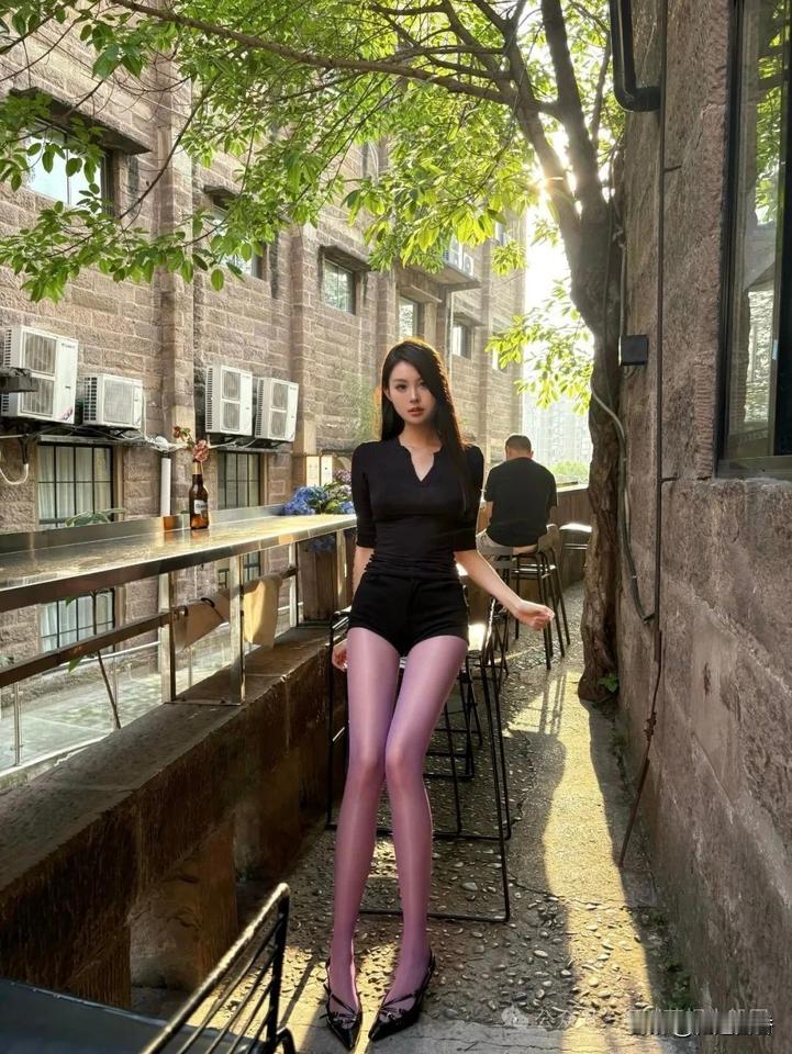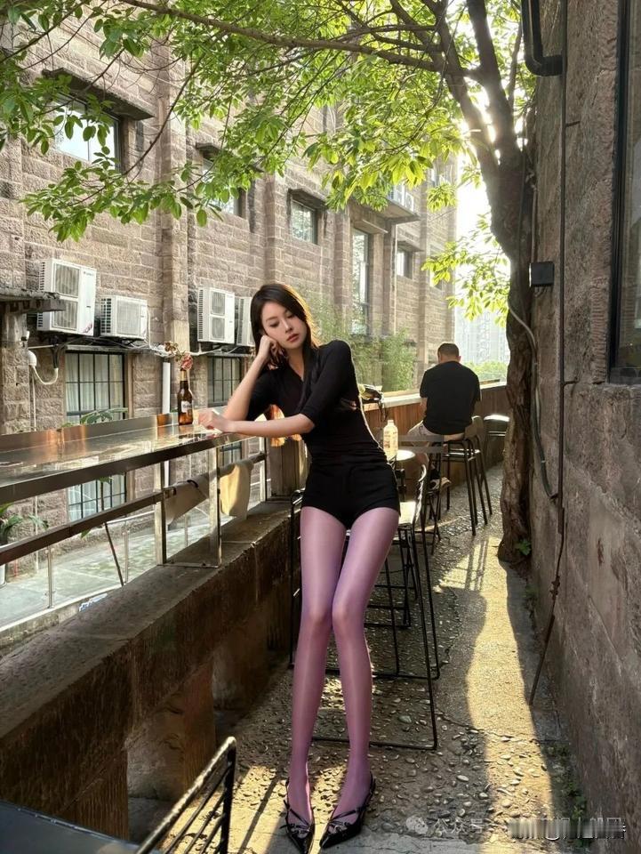 都市女孩的优雅穿搭,黑衣黑袜,尽显时尚魅力!👗👠