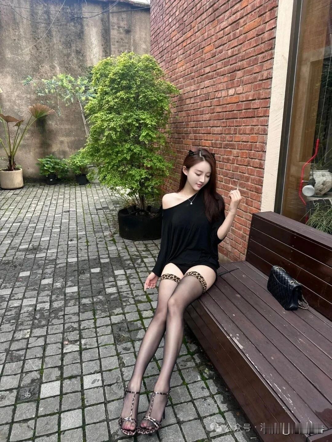 都市女孩的优雅穿搭,黑衣黑袜,尽显时尚魅力!👗👠