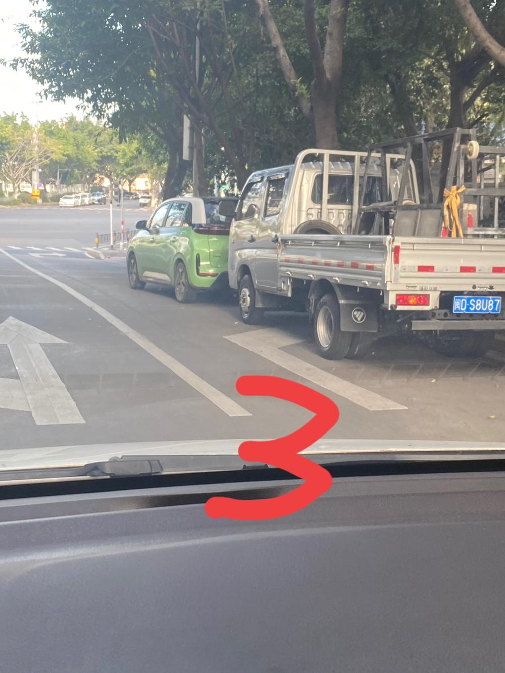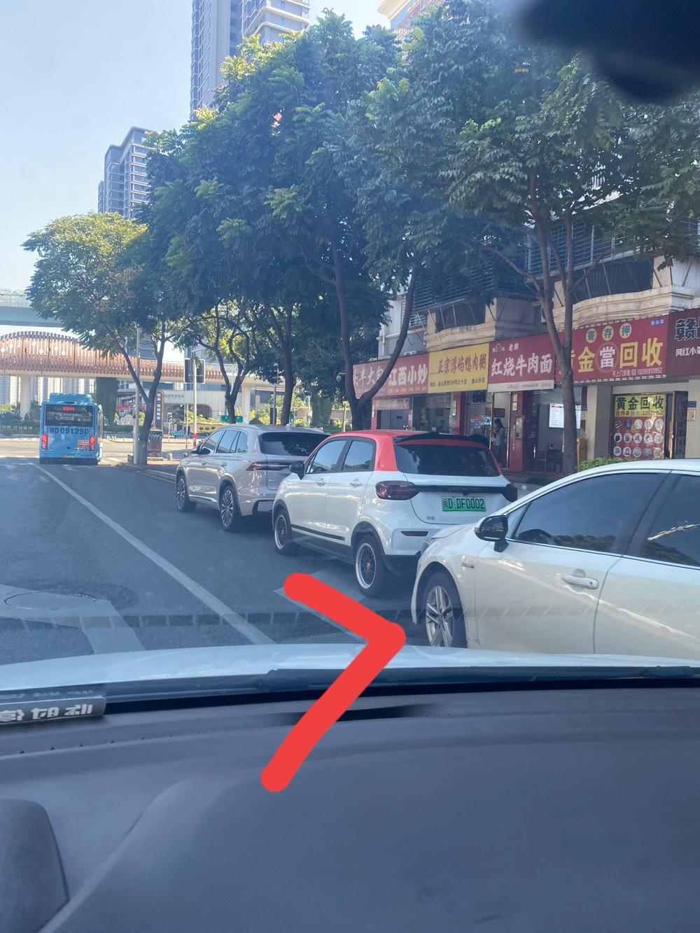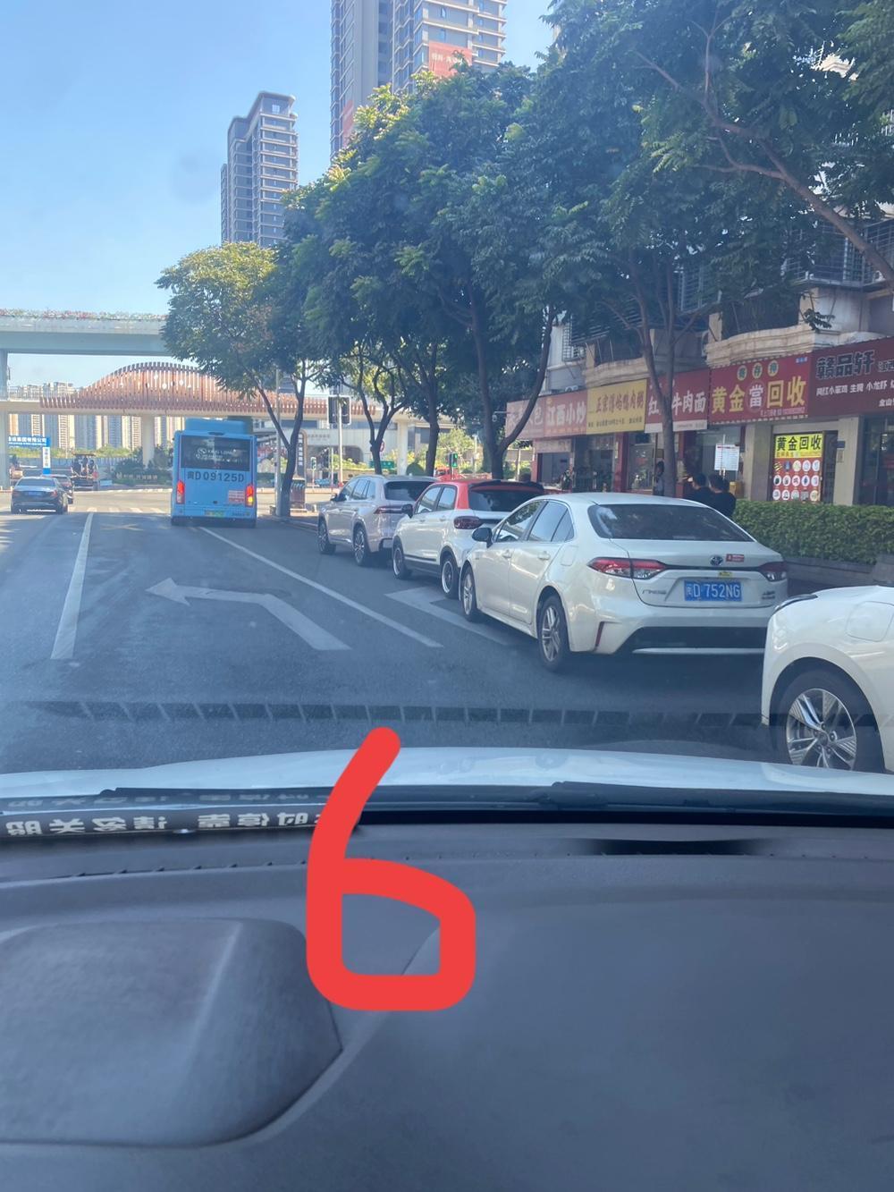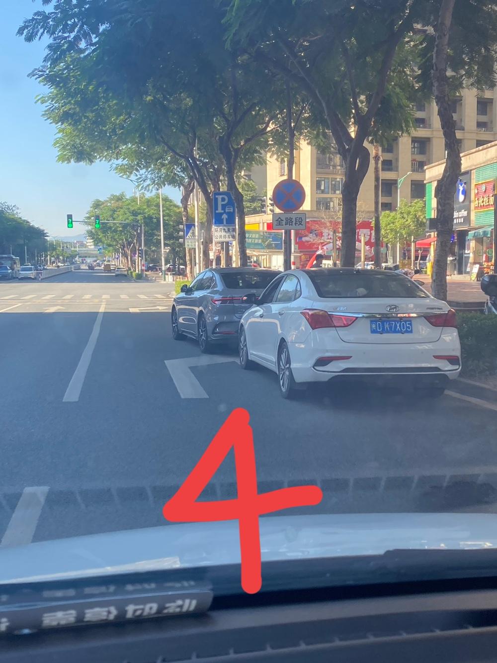 如果没有违停处罚,很多人能肆无忌惮到什么地步,图一图二,这辆车随便停到主干道红绿灯处直行车道上,锁车回家睡觉,早晨七八点也不挪开,堵一条车道。 图三到图七,都是占红绿灯右拐车道停车,让右拐车被迫借道右拐。
