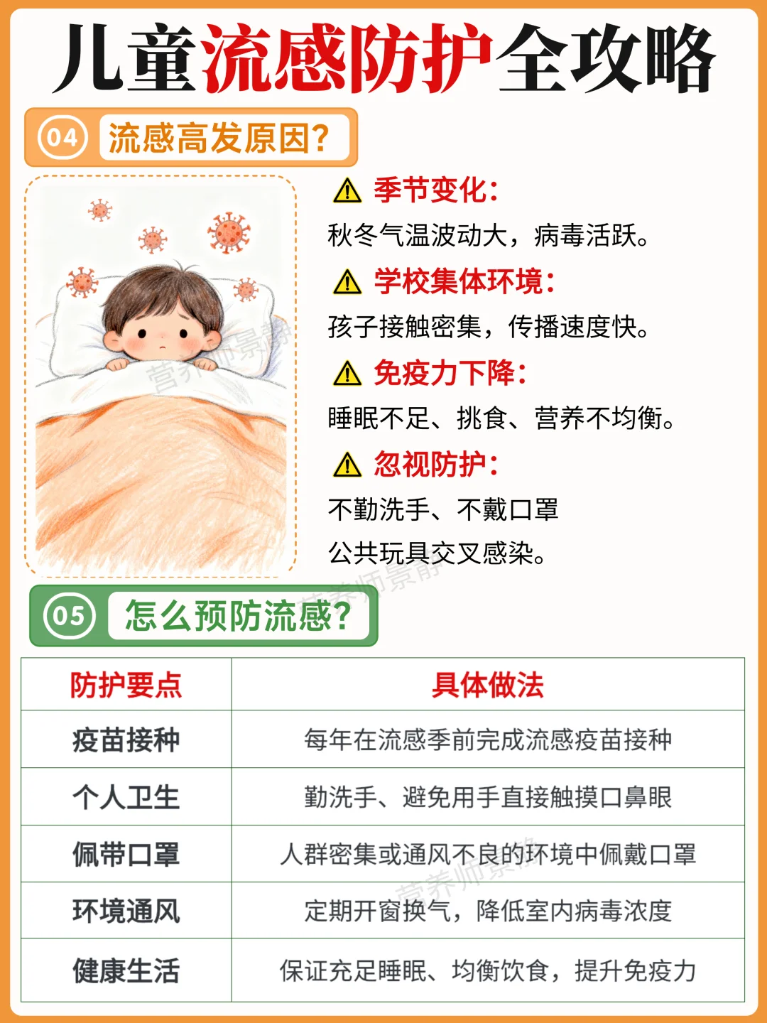 1️⃣打疫苗:每年秋季(9~11月)是接种流感疫苗的时间,疫苗不保证百分百不感染,但可以减轻症状、缩短病程。
