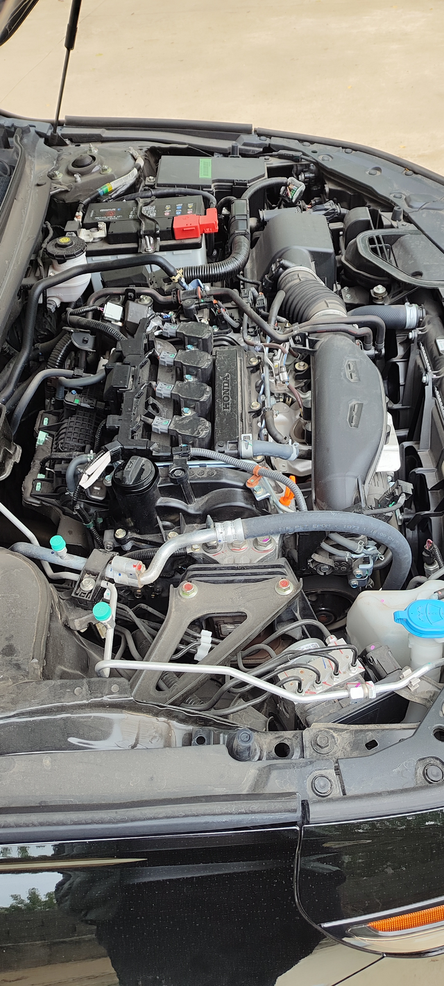 11代雅阁 这中间看着有点渗油啊,是不是啊兄弟们帮我看一眼 还有这发动机舱怎么越看越乱了?,以前刚买来的时候没有这种感觉