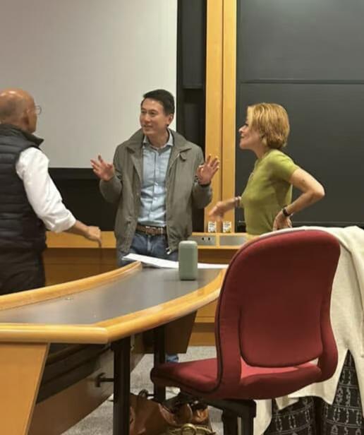 TIKTOK总裁周受资到哈佛大学给学生上课,他的穿衣打扮很有型,文质彬彬,非常的帅气!虽然已经是一个42岁的大叔了,但身上没有太重的沧桑感! 下课之后,他没有马上离开教室,而是留下来和学生们交流,态度非常亲切,完全没有大公司总裁高高在上的姿态。