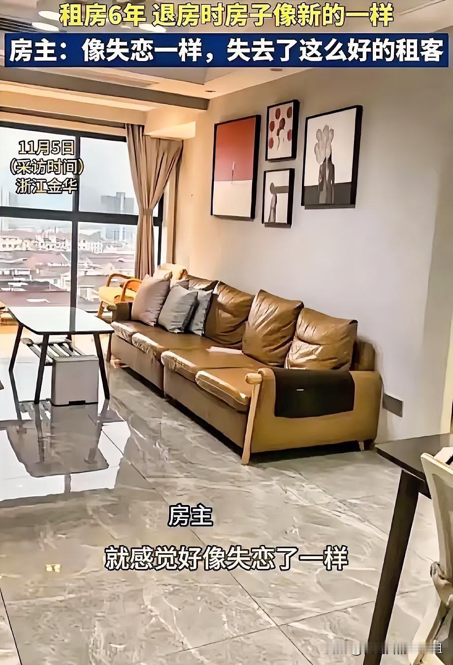 浙江,一位住了6年的女租客要退租,房东上门去收房,以为住了这么久,肯定要花大价钱翻新,还要费时打扫,没想到推开门,直接被感动哭了。 房东推开门那刻,手里还捏着手机准备联系装修队。结果眼前景象让他愣在原地——地板光洁得能照出人影,窗户玻璃透亮得像没装一样。所有家具归置得整整齐齐,连厨房灶台缝隙都擦得锃亮。这哪是住了六年的房子,分明是刚精心打理过的新家。客厅茶几上还放着一封手写信和几盒喜糖,女租客在信里写道:“感谢您六年的照顾,我在这座城市安家了。” 这种租客离开时把房子打扫得一尘不染的情景,在金华横店也曾发生。一位租住了五年多的王女士退租时,房间各个角落手摸不到灰尘,家具都定制了玻璃保护,墙面连一道划痕都没有。房东金女士收房时感动落泪,感觉“像失恋了一样,失去了一个这么好的租户”。而租客王女士则表示,她平日里就很爱惜这套房子,把租房当成了自己的家。 但这种和谐的租赁关系现实中并不常见。四川成都有位房东就遭遇了完全相反的情况:租客“提桶跑路”后,她收房时发现墙面被泼满油漆、电器遭破坏、瓷砖被敲坏,修复费用高达十多万。这种极端案例折射出租赁双方可能存在的尖锐矛盾。 为什么“神仙租客”的故事能引发如此大的共鸣?或许正是因为它在某种程度上修复了人与人之间的信任。就像衢州那位小学教师房东占振华,得知租客是刚毕业的学生后主动减免租金,这种相互体谅最终让租客选择在当地安家,两人从租客关系变成了邻居和朋友。泉州晚报曾报道过一位父亲,他无论租住还是出租房屋,都坚持打扫干净,他认为“将干净的房子还给他,是应该的,也是礼貌”,这种态度甚至让他和房东成了多年好友。 仔细想想,“退租打扫”这个简单举动背后藏着更深层的社会命题。它不只是卫生问题,更是责任心的体现,是即使在没有合同约束的情况下依然选择善始善终的品格。这种品质在今天显得尤为珍贵——当很多人抱着“反正不是我的房子”的心态随意对待租赁房屋时,那些把别人家当自己家一样爱惜的人,展现的是一种难得的教养和自律。 事情也有另一面。我们不能简单将租客分为“神仙”和“恶魔”,每个租客行为背后可能有不同故事。浙江那位王女士退租时房间锃亮发光,而四川那位破坏房屋的租客,是因为要求减免租金被拒后采取了极端行为。租赁关系中的相互理解和包容同样重要,就像那位泉州父亲说的:“房东也有他的难处”。 真正动人的不是房间有多干净,而是这种举动背后体现的相互尊重和责任心。在一个习惯用押金规则和合同条款来约束彼此的时代,这种超越交易的真诚显得格外温暖。它让冷冰冰的租赁关系有了温度,甚至成为一段友情的起点。 各位读者你们怎么看?欢迎在评论区讨论。