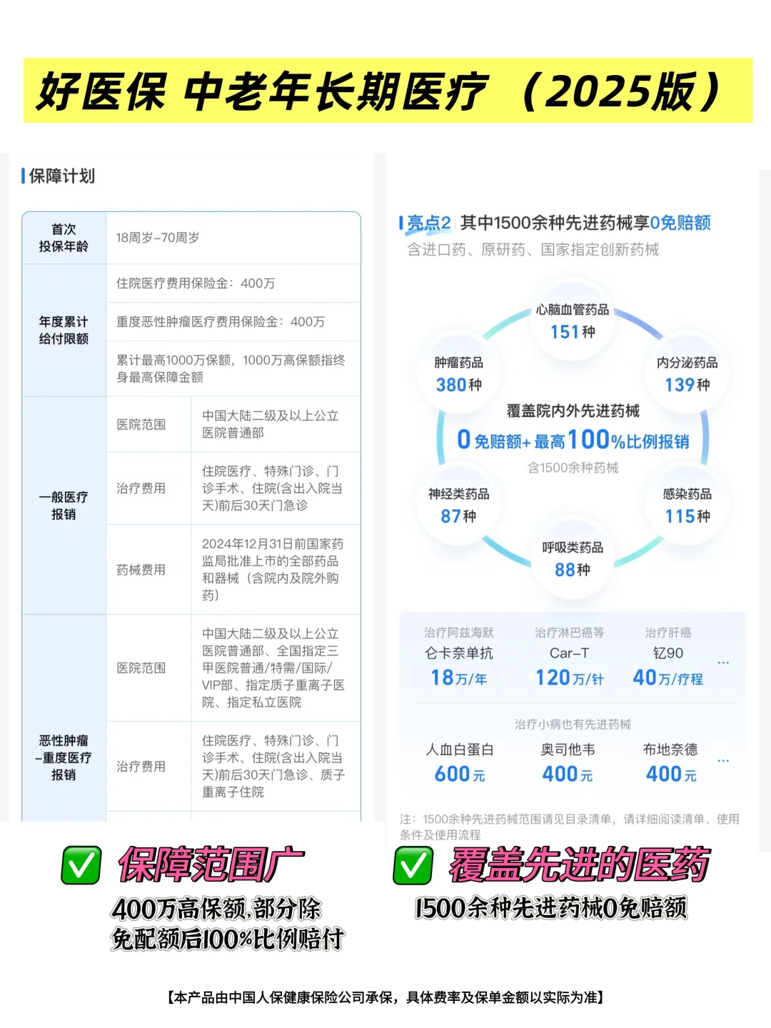 ✅保障范围广、报销进口药、自费药