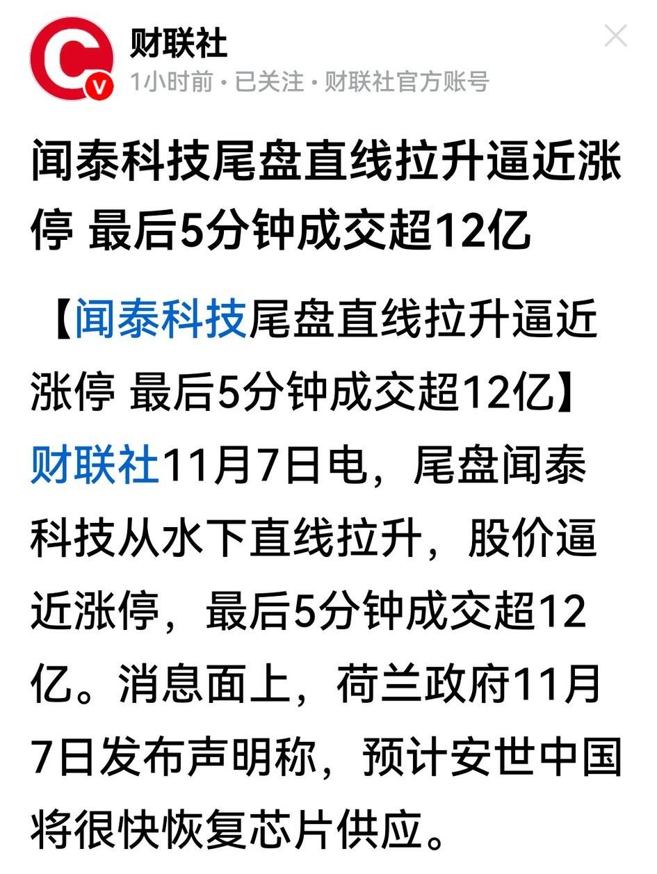奇怪!媒体中午发布福建舰入列的重大消息,军工股中午几乎没有任何反应,相关个股也波澜不惊。 虽然早盘中国船舶脉冲两波,当是先知们试图打提前量,可并无资金跟进。盘面跟着西媒说的算力源头是电力,猛打电力设备和新能源,响应其号令。 尾盘更出异端,HL一纸单方声明,说安世将很快恢复芯片供应,让闻泰科技最后时刻一波直线拉升,几近涨停。不得不说,大A真有媚性。