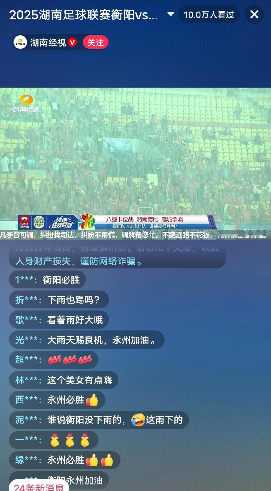 永州vs衡阳这场八强卡位战,不会因为这场大雨推迟或者延后吧?不过,这雨下的也太大了吧,但愿等会开打的时候不要再下了! 积分榜上,客场作战的永州4胜4平积16分排名第四,主场作战的衡阳4胜2平2负积14分排名第五。两队实力应该在伯仲之间,就看今晚临场发挥谁更好一点吧。作为能逼平长沙的永州来说,客场逼平对手应该是最低的要求! 大家觉得今晚会是什么样的比分?我猜2:2双方打平!