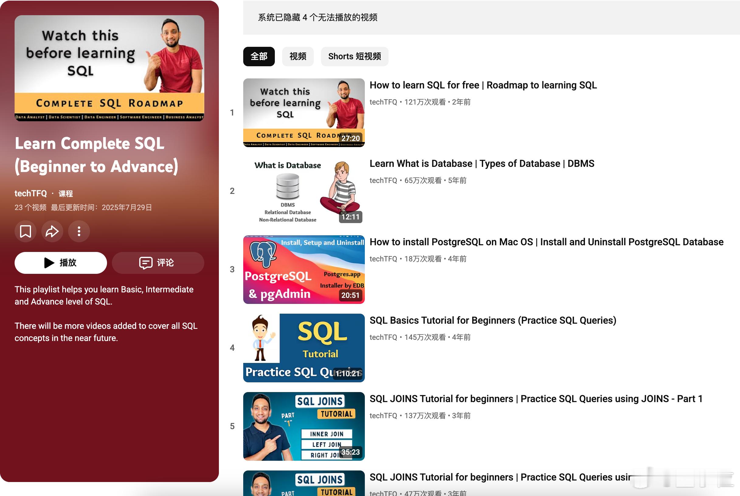 2.SQL数据库:youtube.com/playlist?list=PLavw5C92dz9Ef4E-1Zi9KfCTXS_IN8gXZ