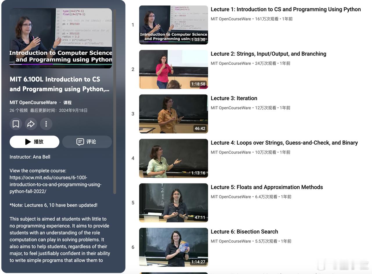 1.Python入门:youtube.com/playlist?list=PLUl4u3cNGP62A-ynp6v6-LGBCzeH3VAQB