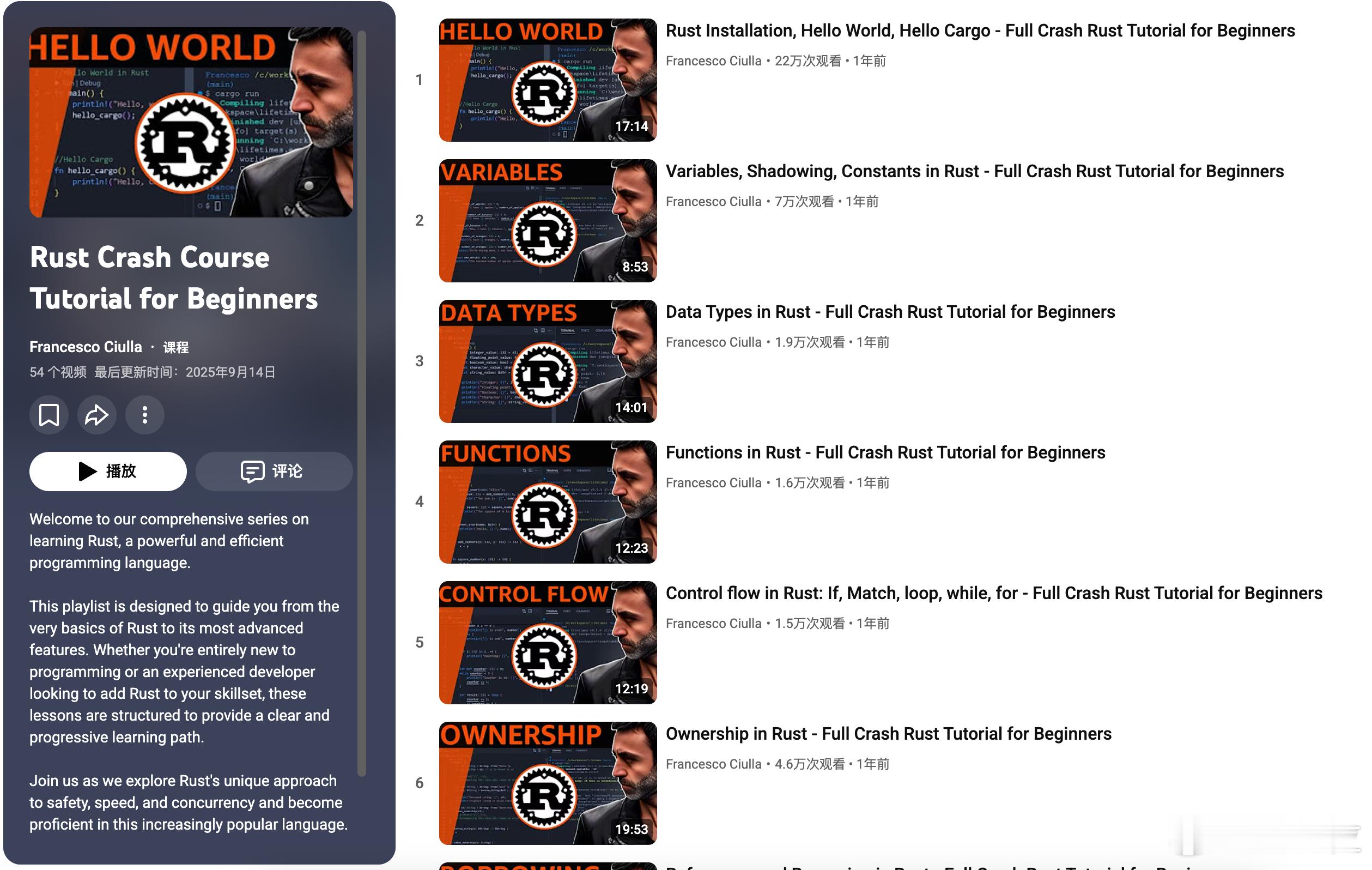 6.Rust系统开发:youtube.com/playlist?list=PLPoSdR46FgI412aItyJhj2bF66cudB6Qs