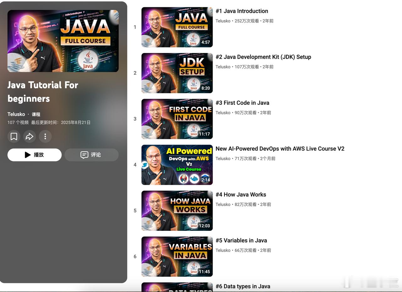4.Java企业级:youtube.com/playlist?list=PLsyeobzWxl7pe_IiTfNyr55kwJPWbgxB5