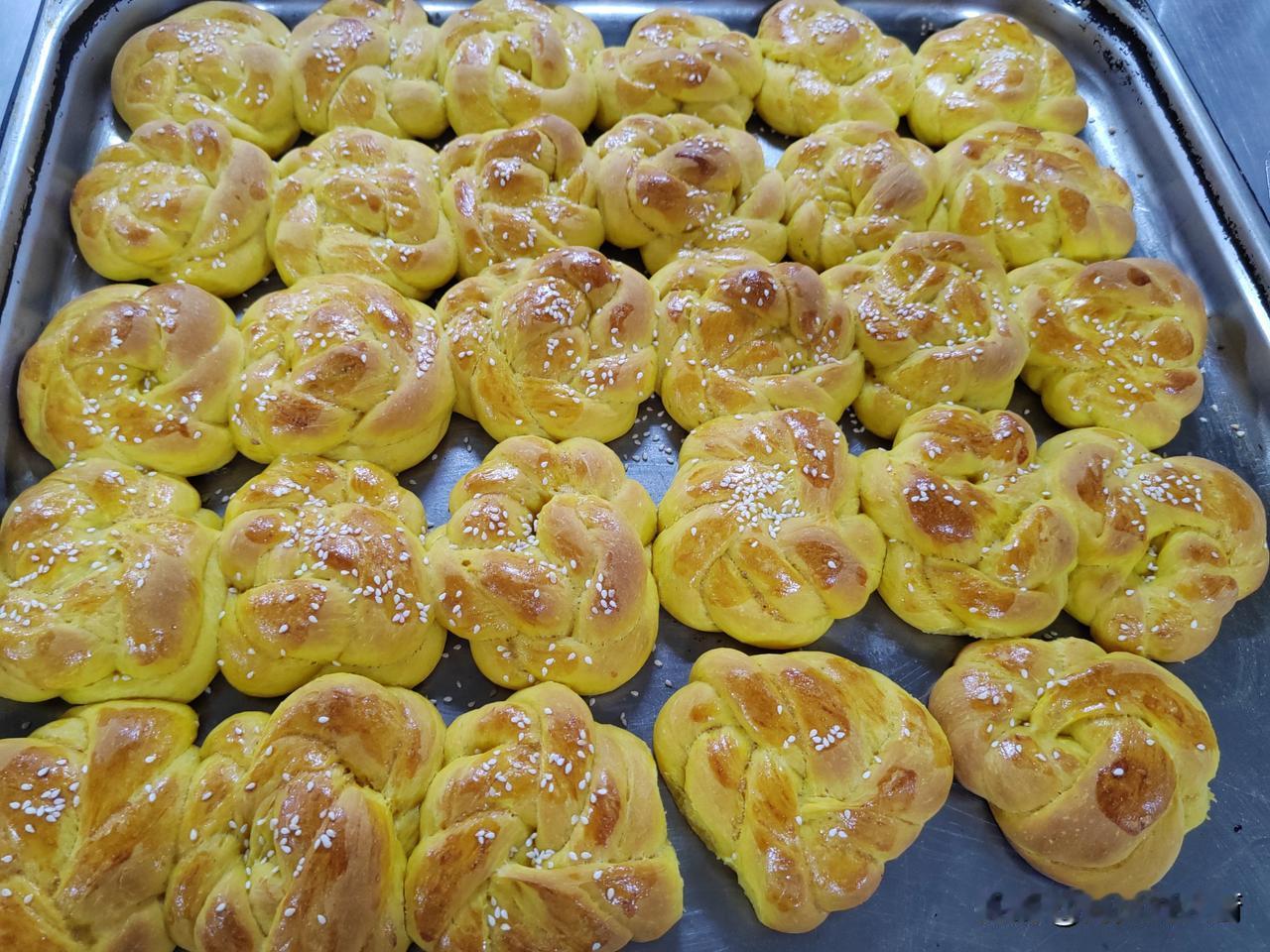 结束了一天的工作,回到房间,充个热水袋,给僵硬的脖子热敷一下,然后躺在床上,慢慢的享受船舶摇晃给我们带来的快感,让劳累的身体得以放松。 时间过得真快啊!不知不觉上船已经一周了,由于船上有菲律宾船员,他们有个习惯,就是在喝上午茶和下午茶的时候,都要吃点小零食(点心),这就要求厨师变着花样给他们做茶点,刚接班的时候,感觉时间不够用啊,做起来手忙脚乱,一天到晚都在厨房里瞎忙和,现在已经习惯了,每天不仅变着花样做茶点,而且还有了充足的休息时间。从做茶点中,我能学到很多东西。 今天早上,忙完了早餐,就把昨天留下的南瓜泥从冰箱里取出来,用微波炉加热一下,加入适量的酵母,白糖,鸡蛋,油和面,和好后直接做成小面包,放在烤箱里醒发,然后回房间休息半小时,9点钟下来,烤上面包,接着准备午餐,刚刚好,一点也不耽误啊! 只是这个面包是用普通面粉做的,因为船上没有高筋粉,吃不出面包的口感,等下次上伙食了,我会申请高筋粉的,那时做的就更完美了!