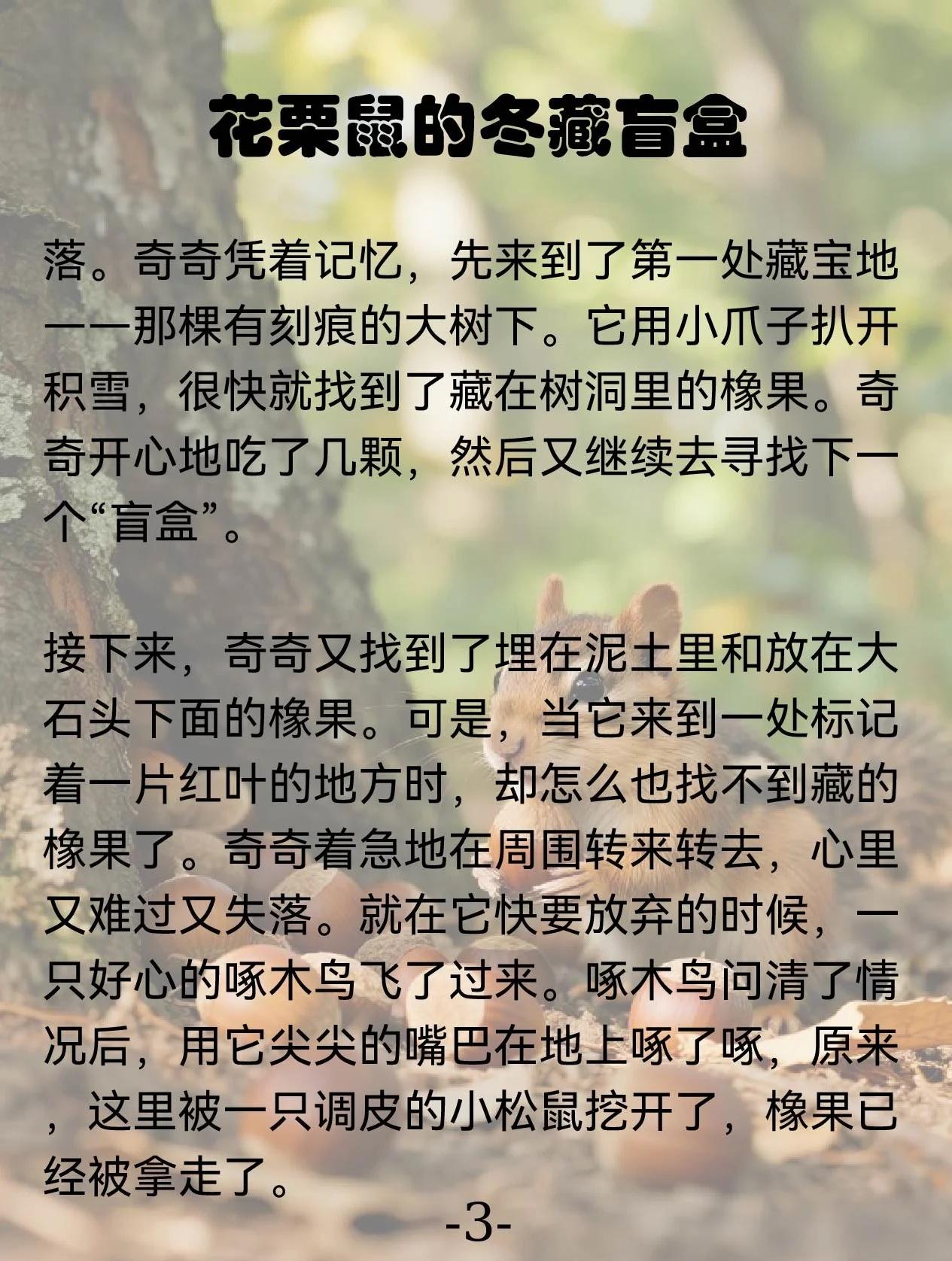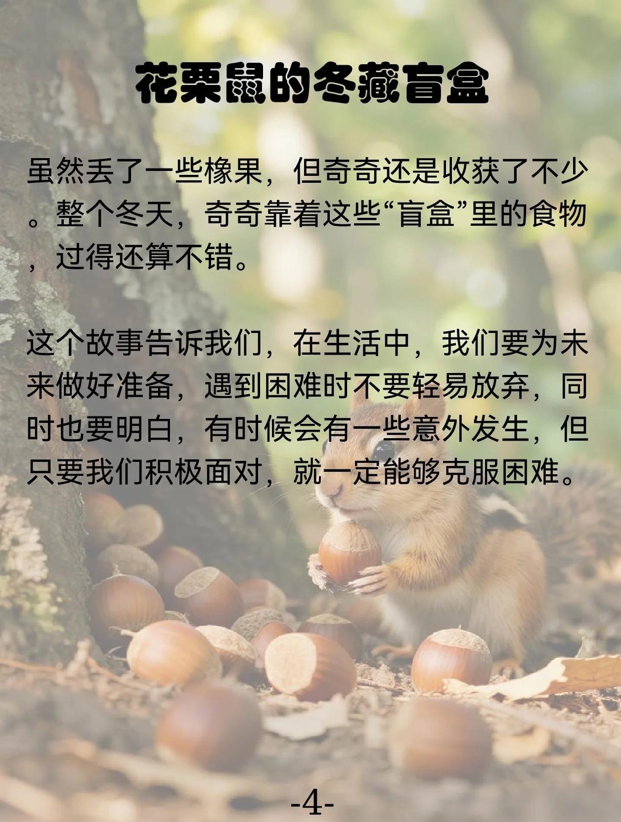 第235天胎教小故事:花栗鼠的冬眠盒 这个故事告诉我们,在生活中,我们要为未来做好准备,遇到困难时不要轻易放弃,同时也要明白,有时候会有一些意外发生,但只要我们积极面对,就一定能够克服困难。故事大全 故事 童话故事 胎教故事 晚安故事 宝宝睡前故事 睡前故事 儿童故事 爸爸胎教故事