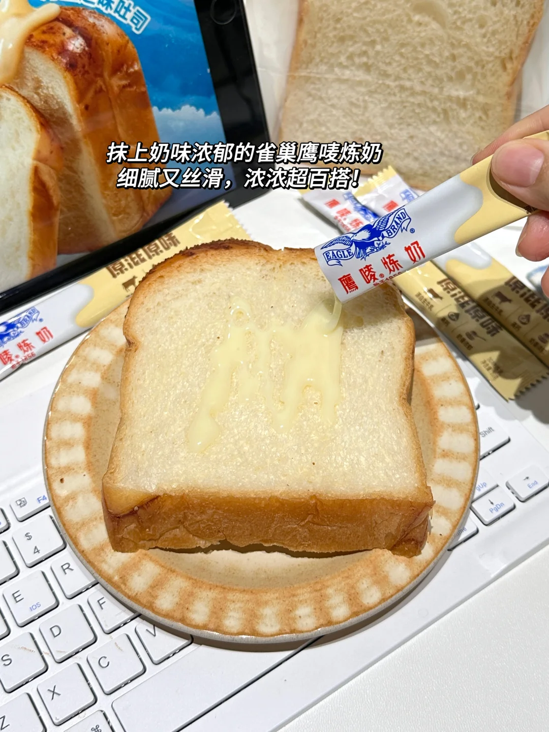 抹上奶味浓郁的雀巢鹰唛炼奶,又多了一丝清甜!口感丰富到爆炸!