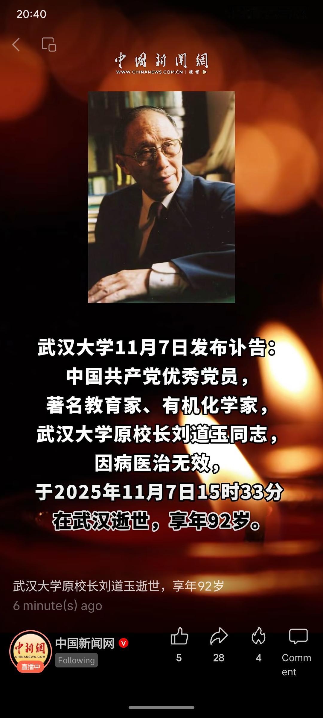 武汉大学原校长刘道玉同志于2025年11月7日在武汉逝世,享年92岁。他是著名教育家、化学家,曾推动学分制等教育改革,为高等教育发展作出重要贡献。 其教育理念开拓创新,倡导学分制与创造教育,致力培养创造性人才。
