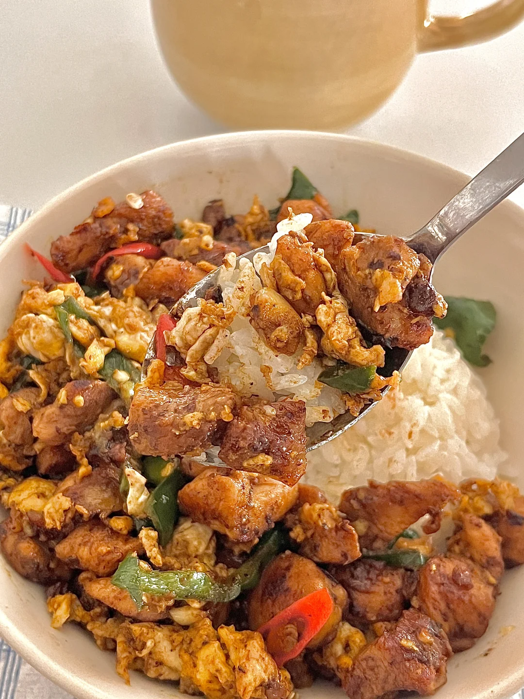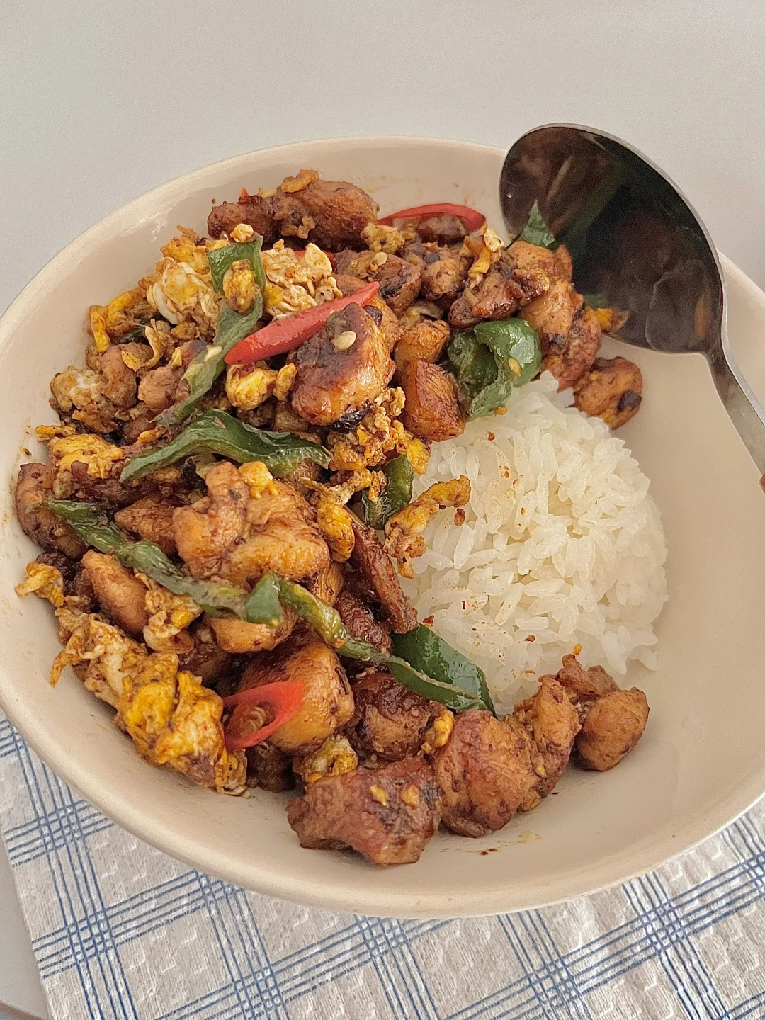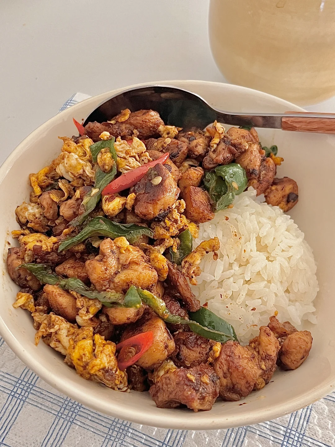 好喜欢我的减脂餐呀,瞧这碗🥣辣椒炒鸡肉搭配香嫩滑蛋,鲜香又低脂,每天吃都不腻的组合,和米饭拌在一起,每一口都是享受 。 食材🥬:鸡腿肉 辣椒 鸡蛋 豆豉酱 蒜末 做法再图上⬆️咸香咸香的的 快去试试吧~