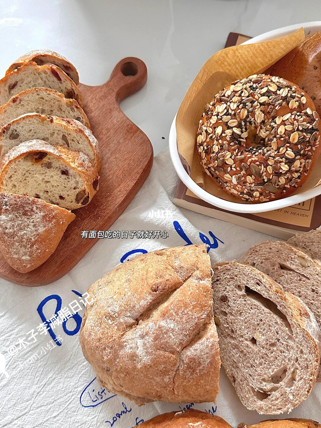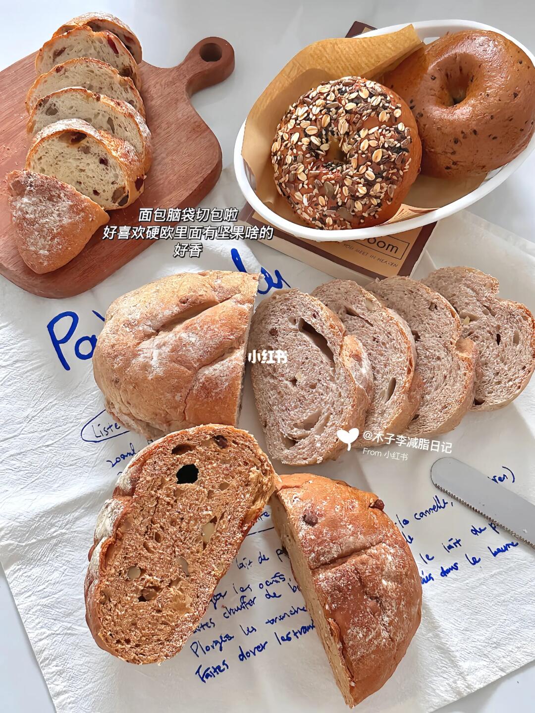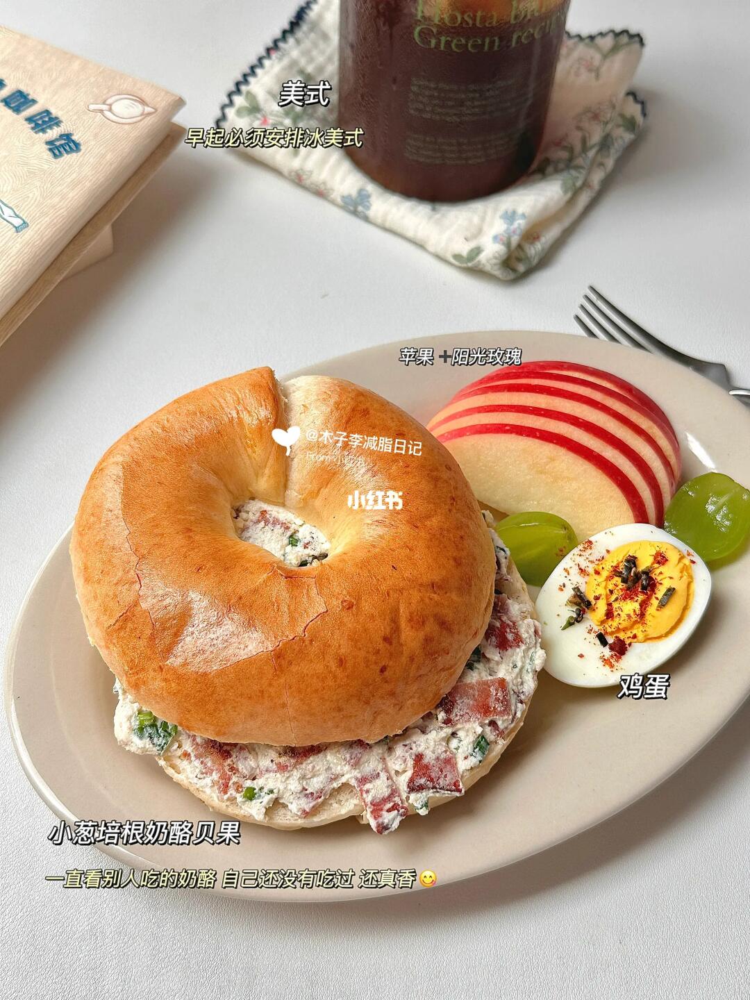 ▪️初始体重:120斤 ▪️现重:91斤 ▪️已➖29斤 - 🥣早:小葱奶酪贝果 | 鸡蛋 | 苹果 | 阳光玫瑰 | 冰美式 🥣午:广式河粉 🥣晚:凉拌面 💧喝水2000ml 🏋️运动:🈚 - 📝小葱培根奶酪都是看别人吃,自己动手做抹贝果还真香哦~ .又购入了一波面包🍞有贝果、有欧包 、包体挺软和的,里面还有好多坚果,好喜欢呀!早餐能吃面包就好幸福~ 好好吃饭、少熬夜、多喝水、多吃蔬菜水果!